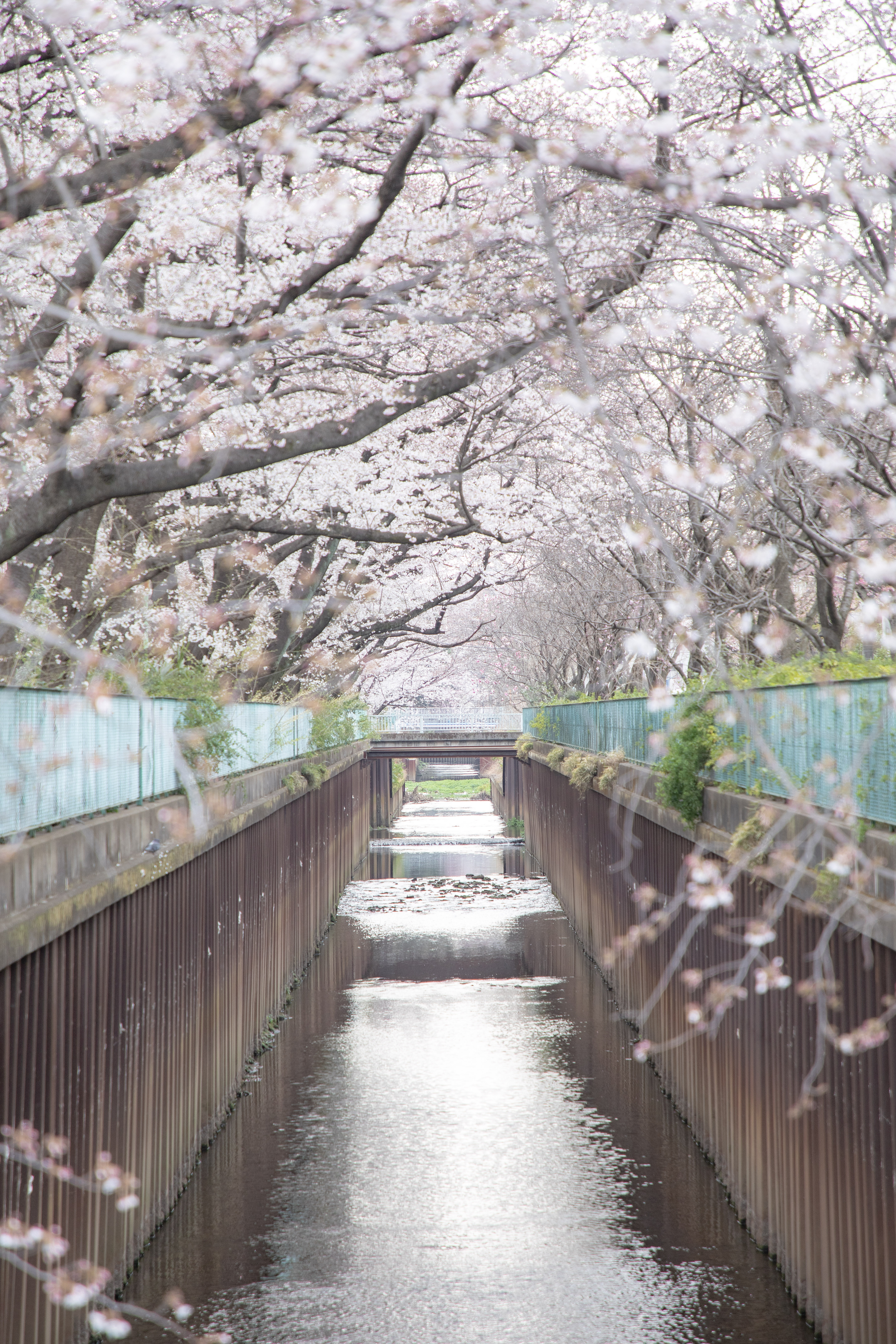 여행을 하던 도중 우연히 발견한 벚꽃터널과 하천을 담았다.