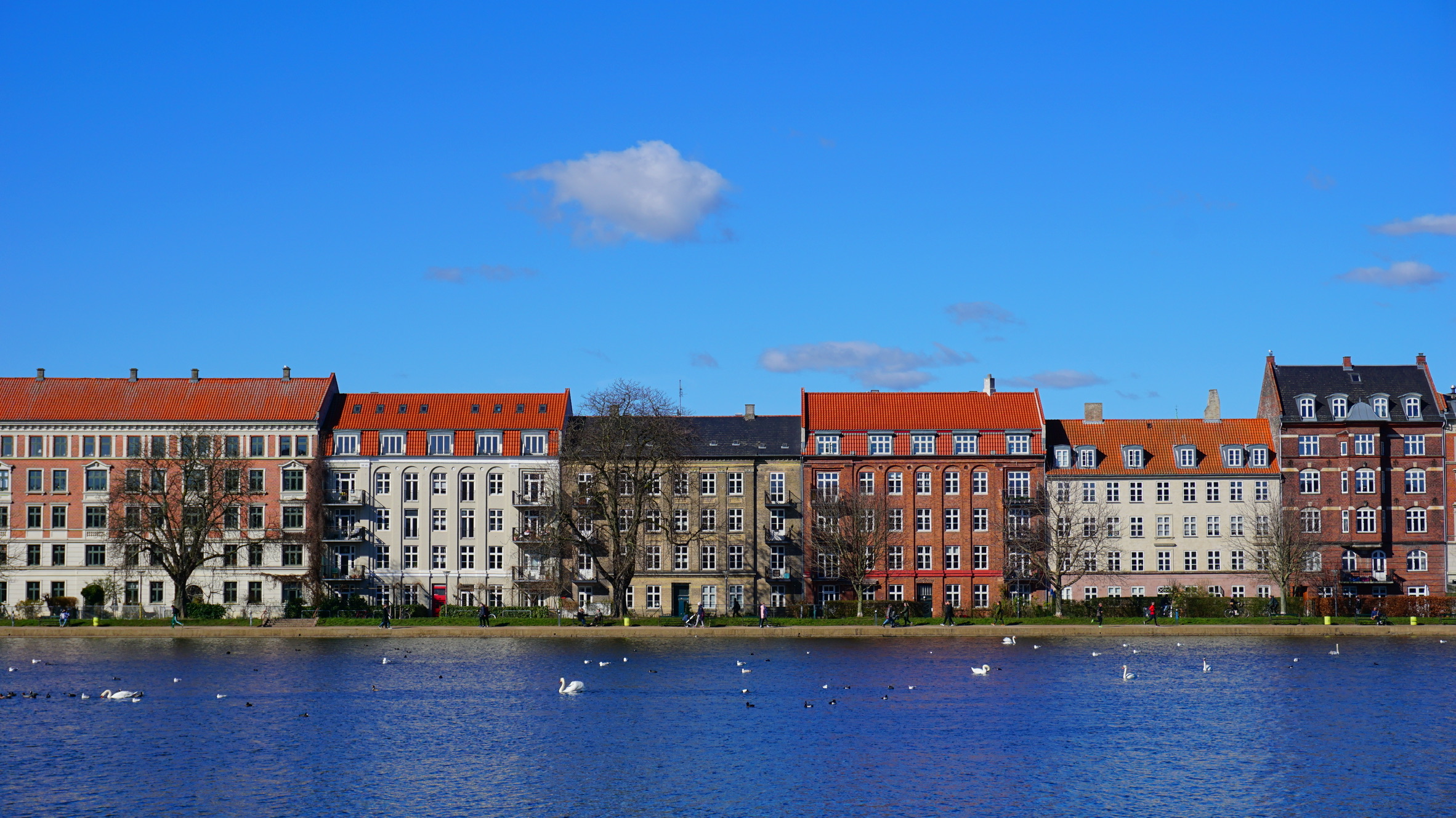 덴마크에서 찍었던 호수들과 뒤에 집들