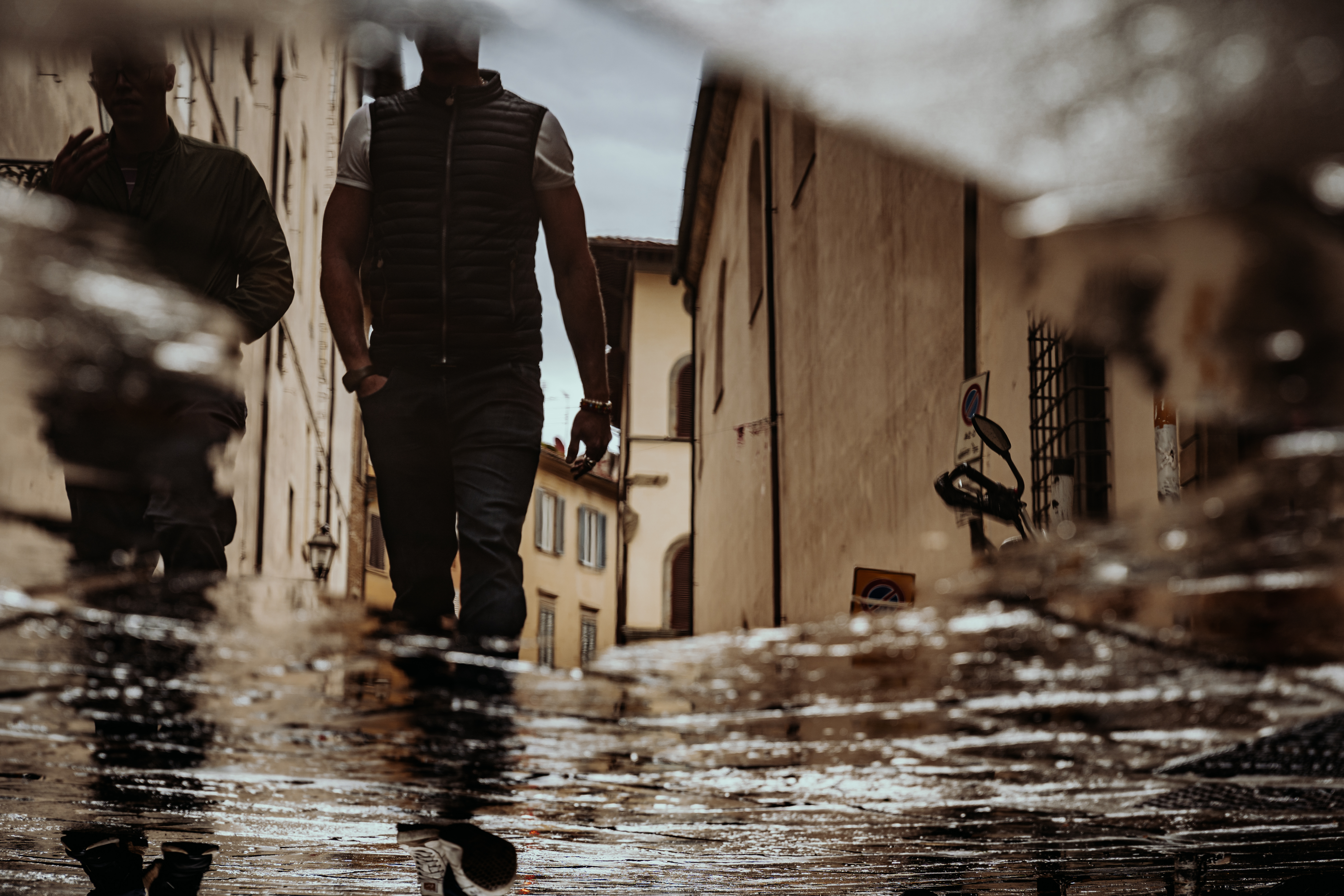이탈리아 피렌체 골목에서 비온 후에 반영에 비친 두남자를 기다려서 담아봤습니다.