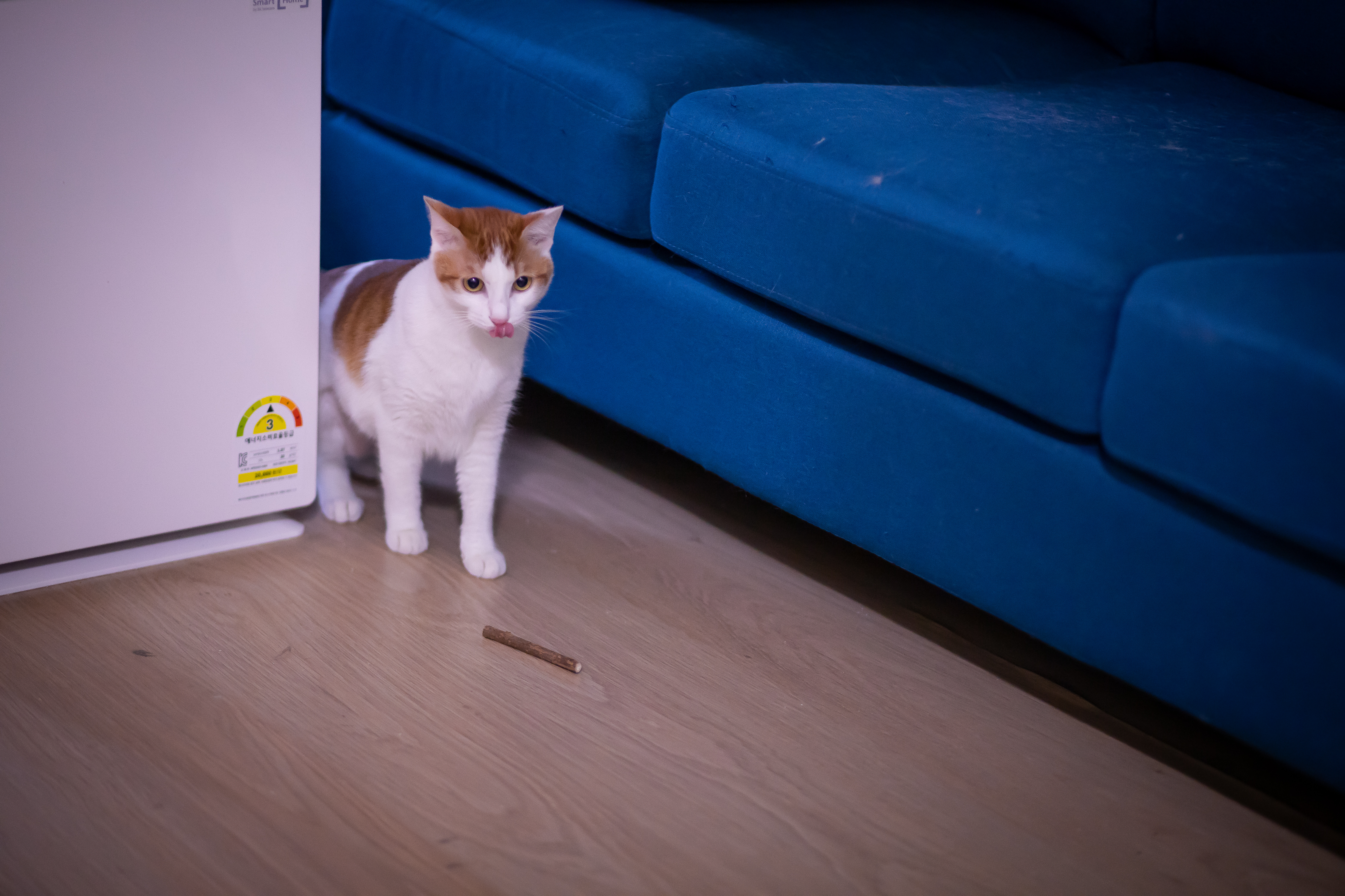 몰래 츄르 한 포 끝내고 나온 치즈 고양이.