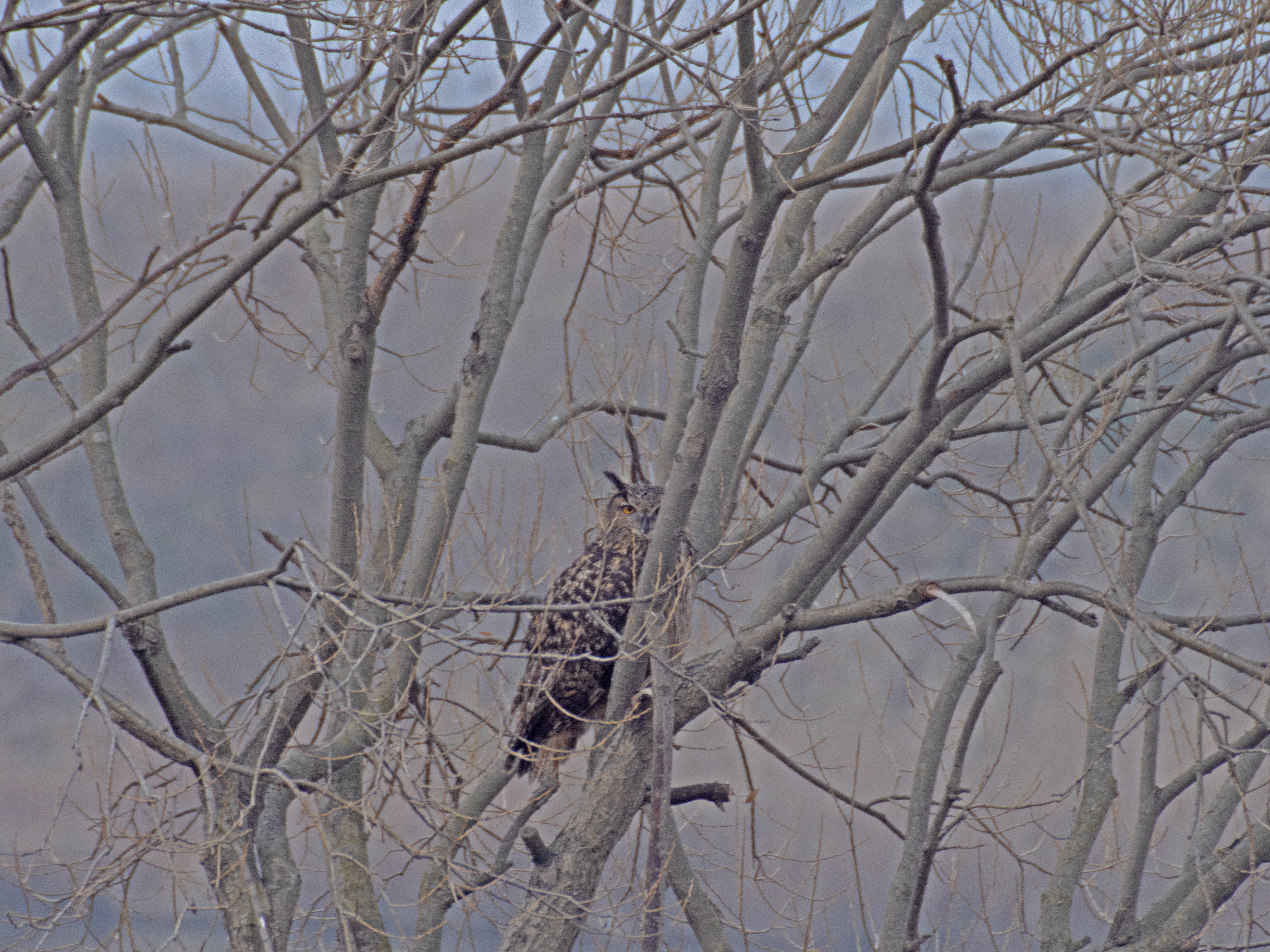 아침에서 정오, 물가 곁 나무 속 자신을 숨기고 지나던 나를 주시하던 수리부엉이. 찰나 마법을 부리는 것 같았다.