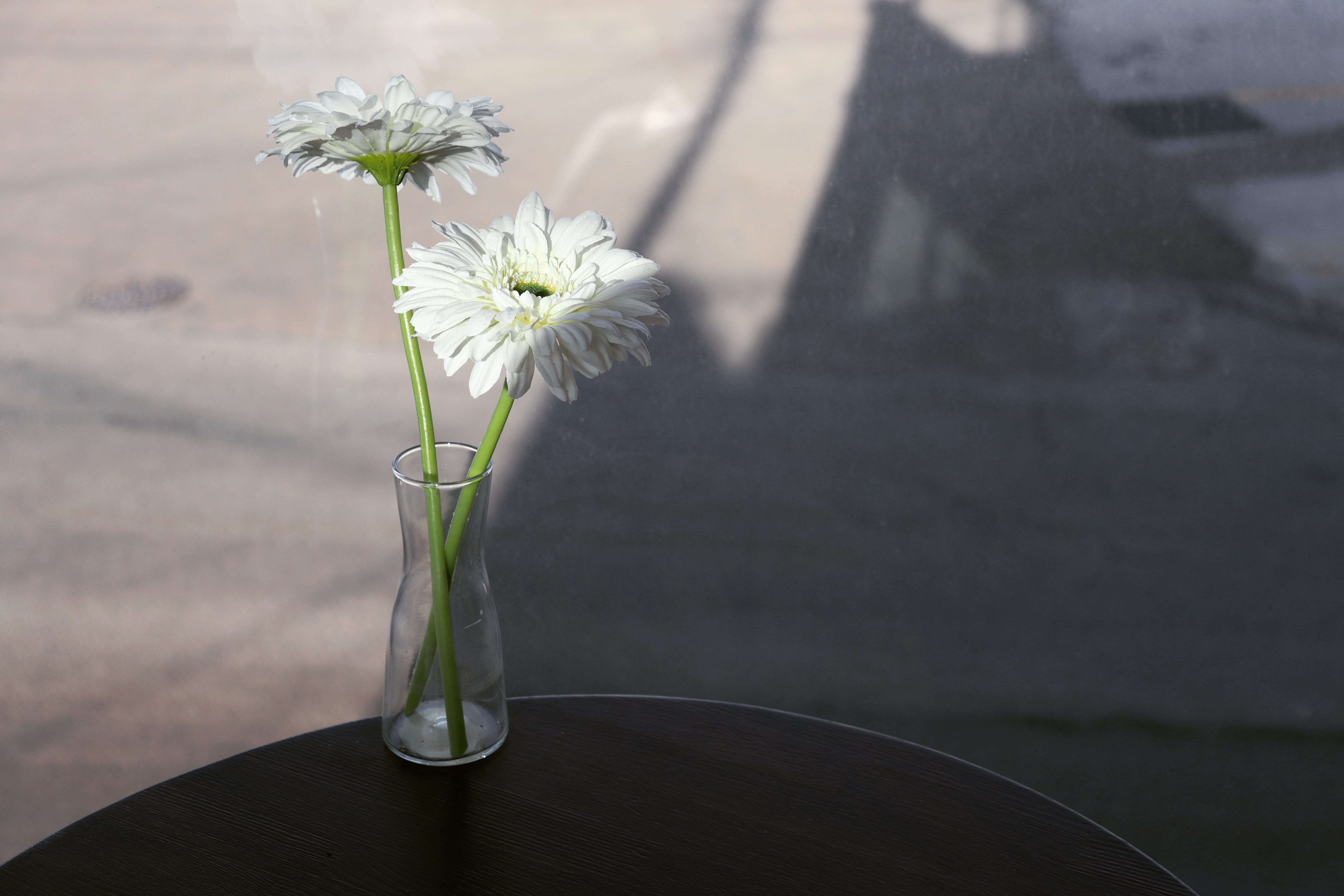 물없는 꽃병과 조화꽃