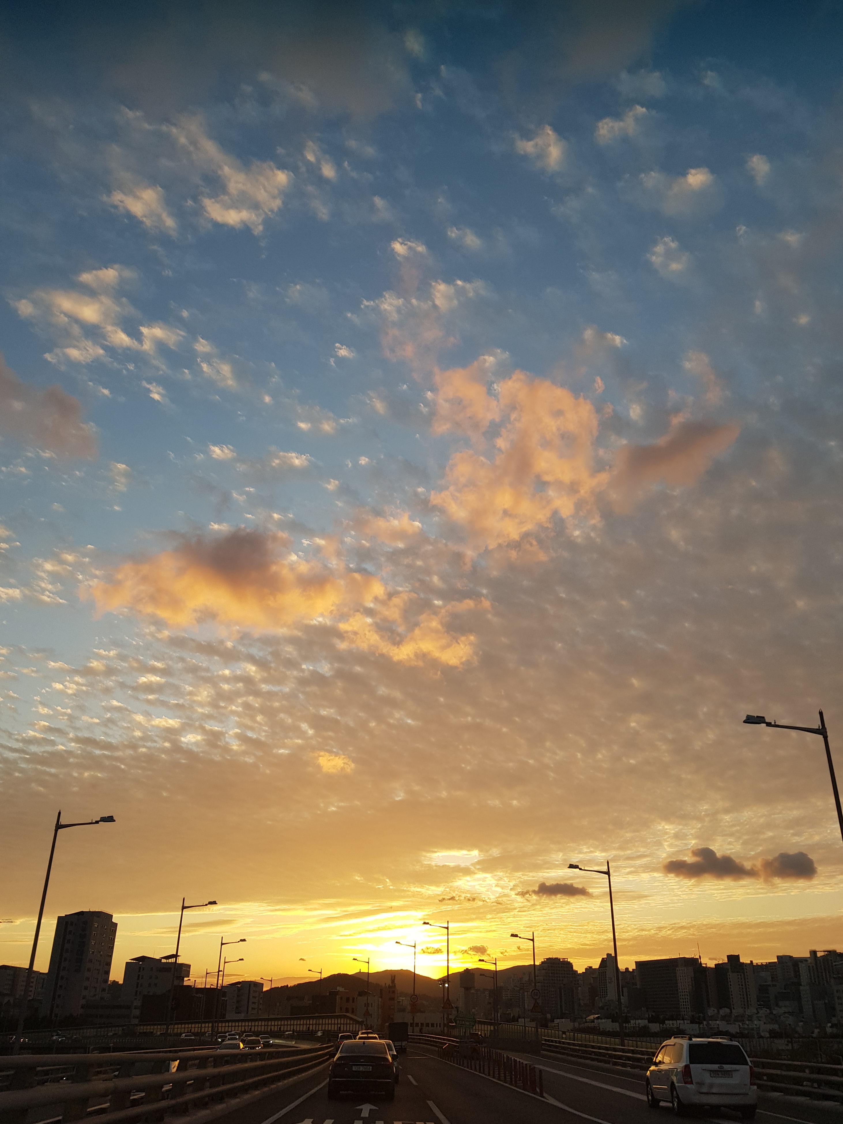 석양과 함께 집으로 가는 길. 오늘 하루도 무사히 지나 별일없이 마무리하길.
