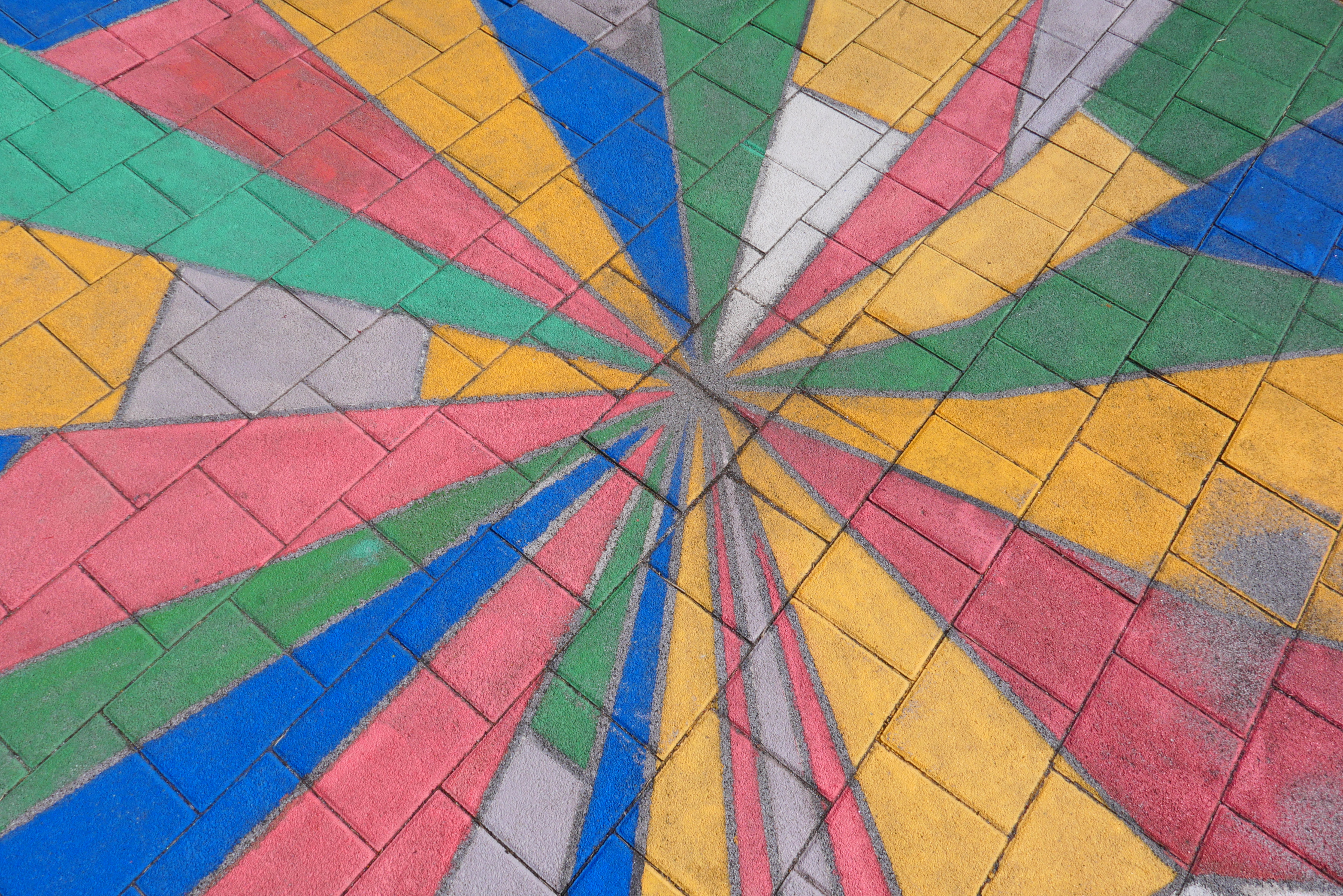 자주 지나다니던 거리를 지나다 발견한 컬러감이 물씬드는 바닥. 그냥 지나칠 수 있었지만 이 바닥을 마주한 순간, 잠시나마 즐거움을 느꼈고 찰나의 한 컷이 나왔다. 어떤 어린이가 대충 크레파스로 슥슥 그리기라도 한 것 마냥 표현된 그림과 컬러가 찰나의 순간 어린시절의 행복한 회상까지 선물해주었다.
