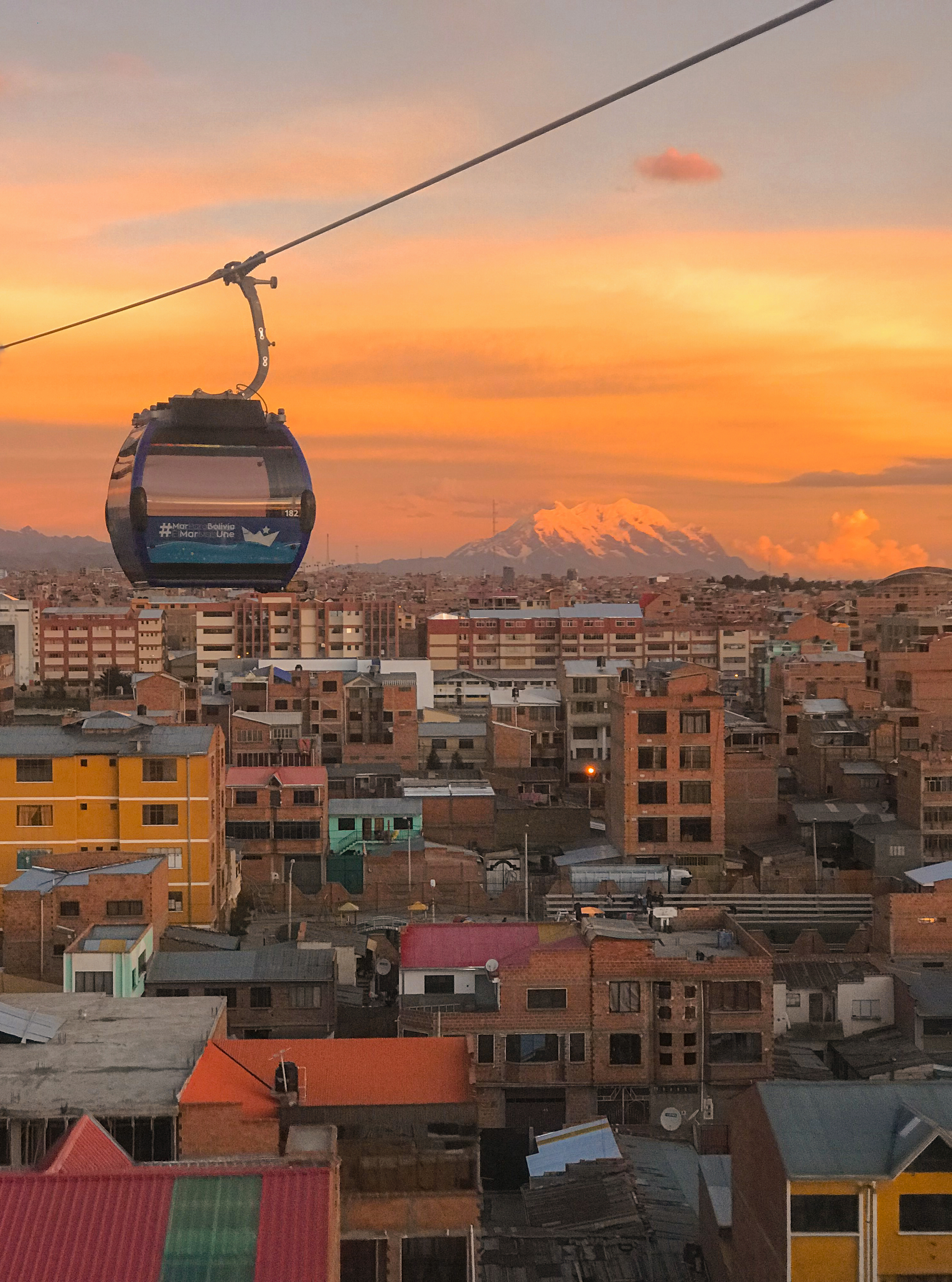 볼리비아 라파즈에서 촬영한 해지는 오후 사진입니다.우리나라에서 지하철이 대표적인 교통수단이듯,라파즈에서는 케이블카가 대표적인 교통수단인 건이 인상적이라케이블카와 함께 해지는 오후 무렵을 담아보았습니다.