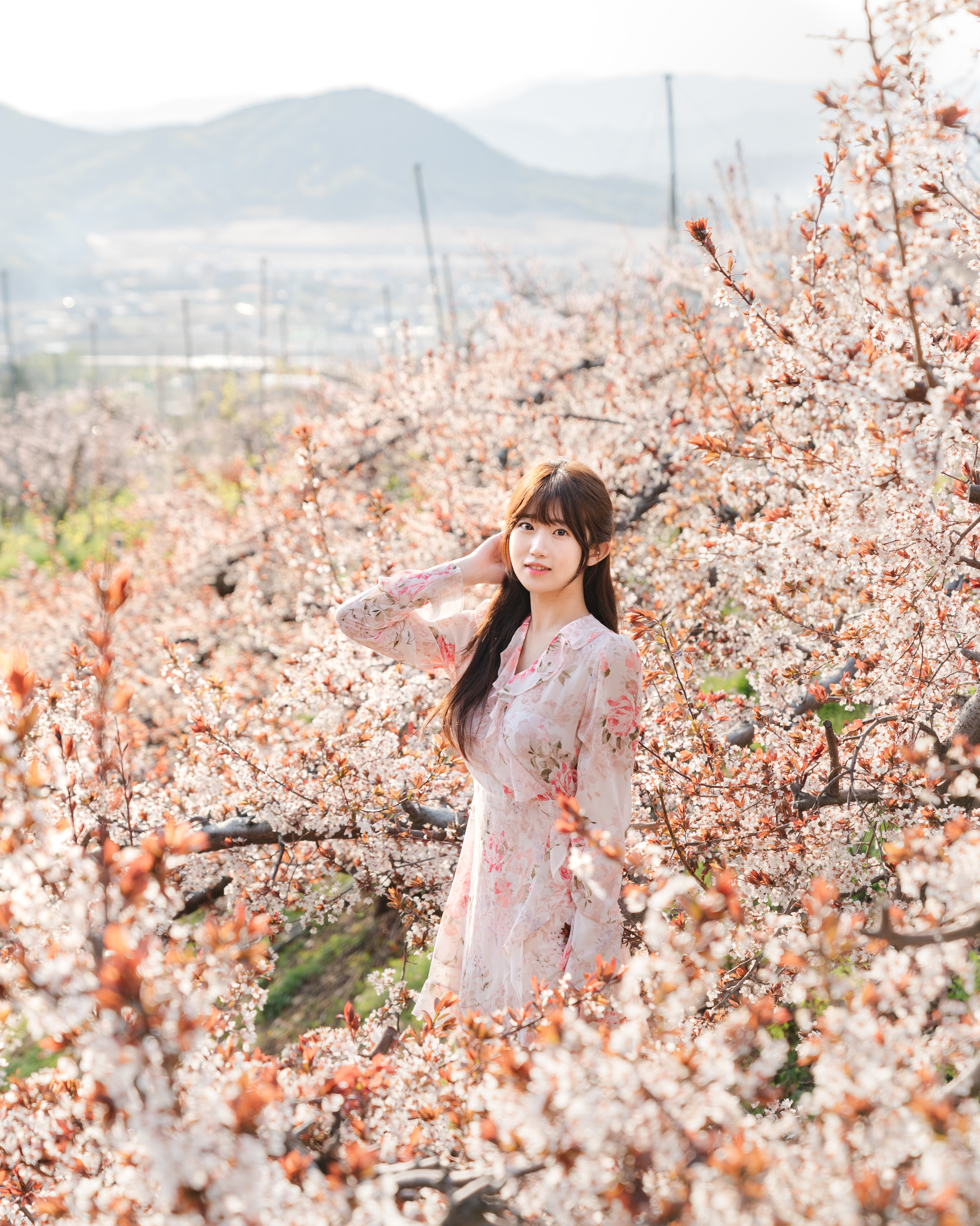 해가 모델 뒤로 역사광으로 저물면서 헤어쪽 붉은 림라이트가 포인트가 되고, 꽃들도 함께 붉게 물들면서 그사이에 모델을 함께 담았습니다.