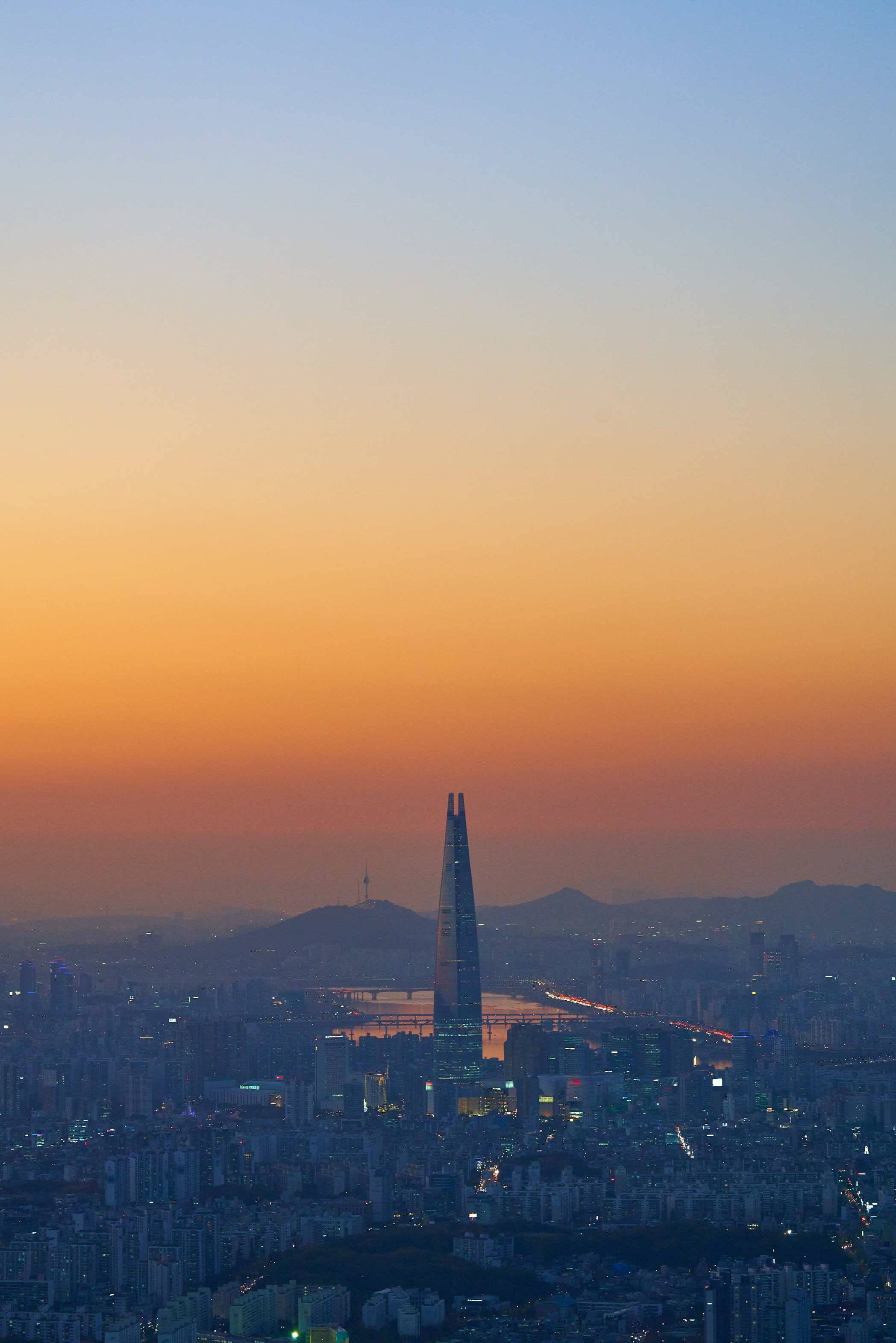 어둠이 내리기 직전, 아름다운 그라데이션을 뽐내는 하늘