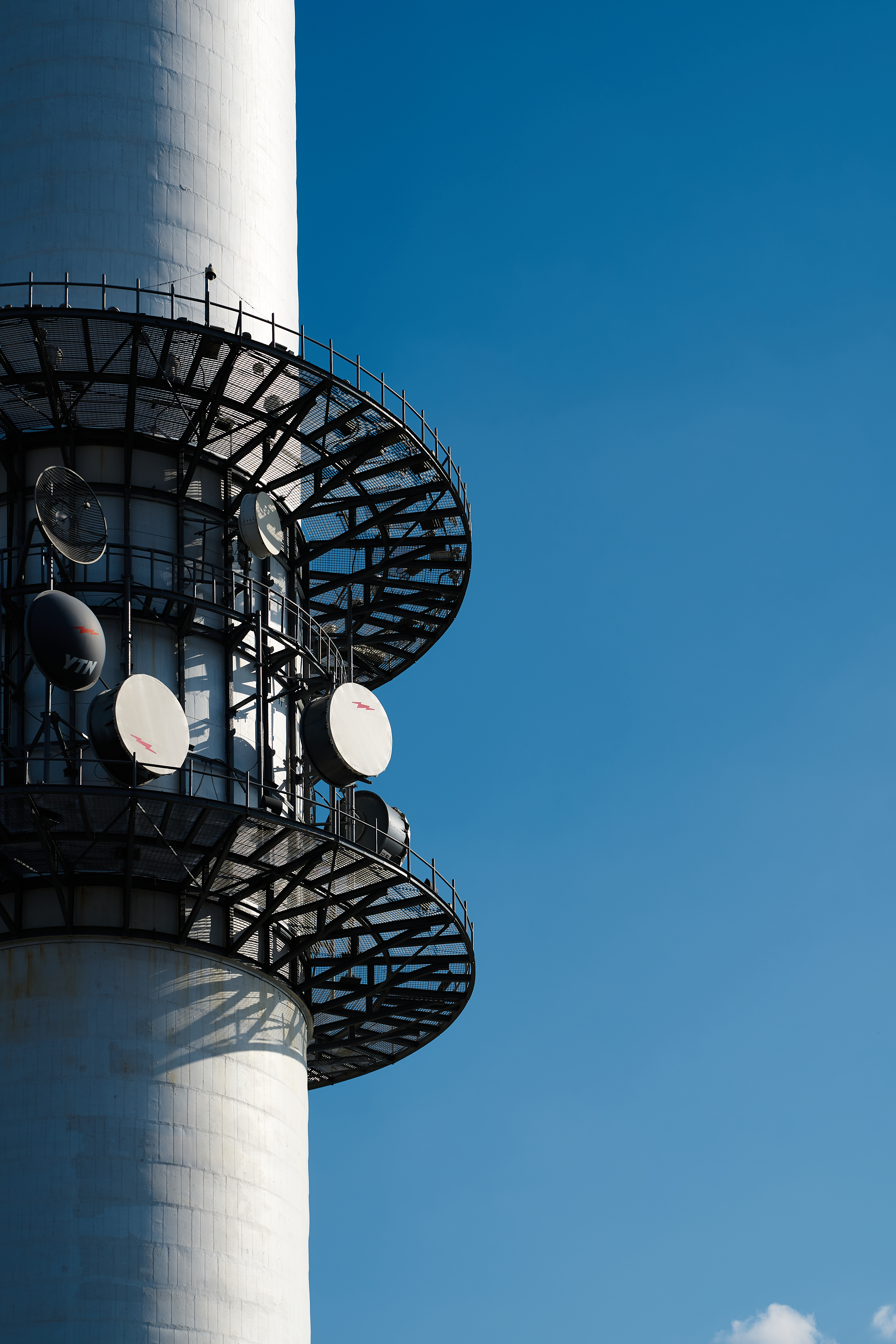 맑은 날의 남산타워를 클로즈업하여, 하늘의 색감과 남산타워의 명암을 집중적으로 표현한 사진입니다.