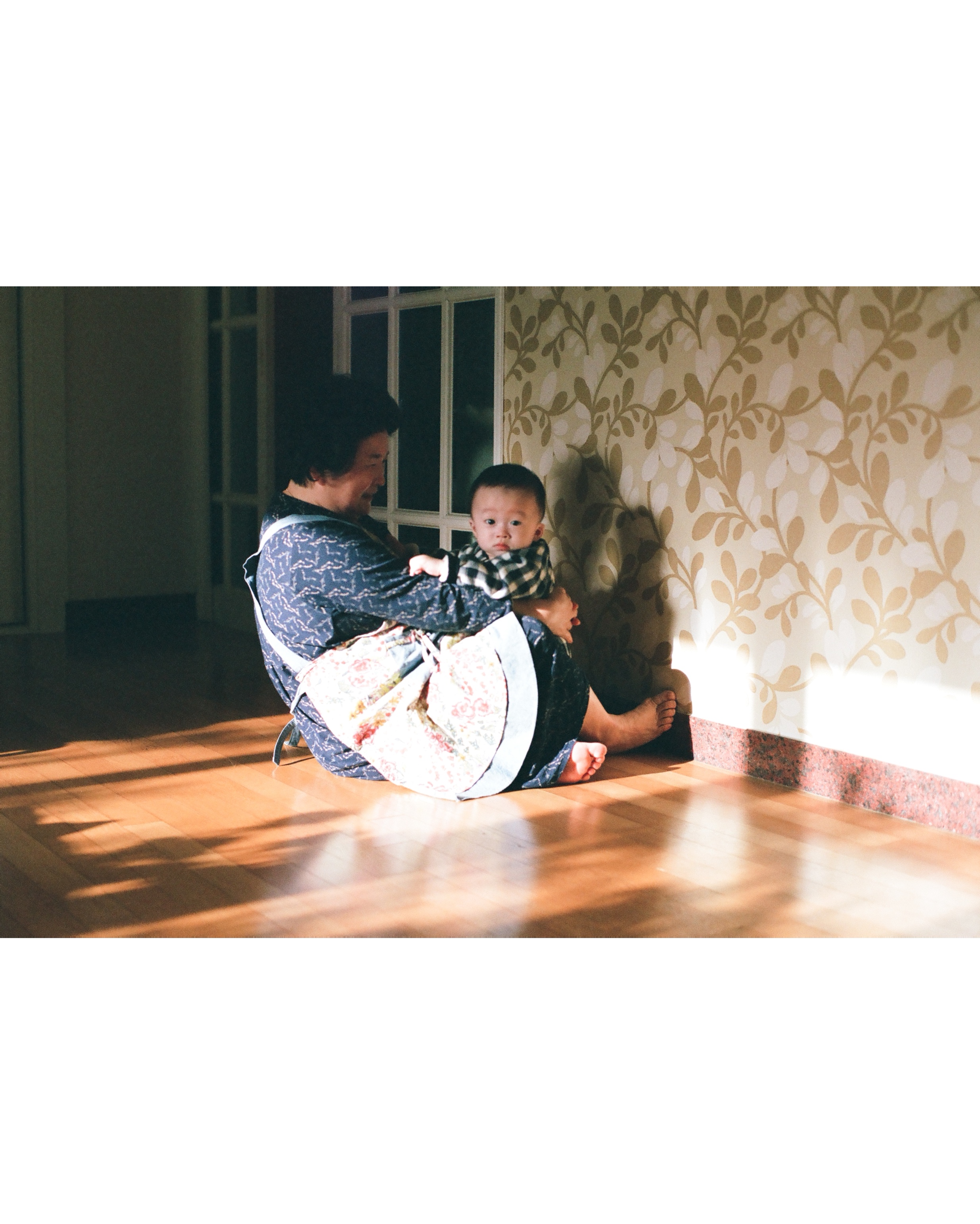 따뜻한 햇살이 쏟아지고 품에 아이를 안은 외할머니의 사랑이 느껴집니다.