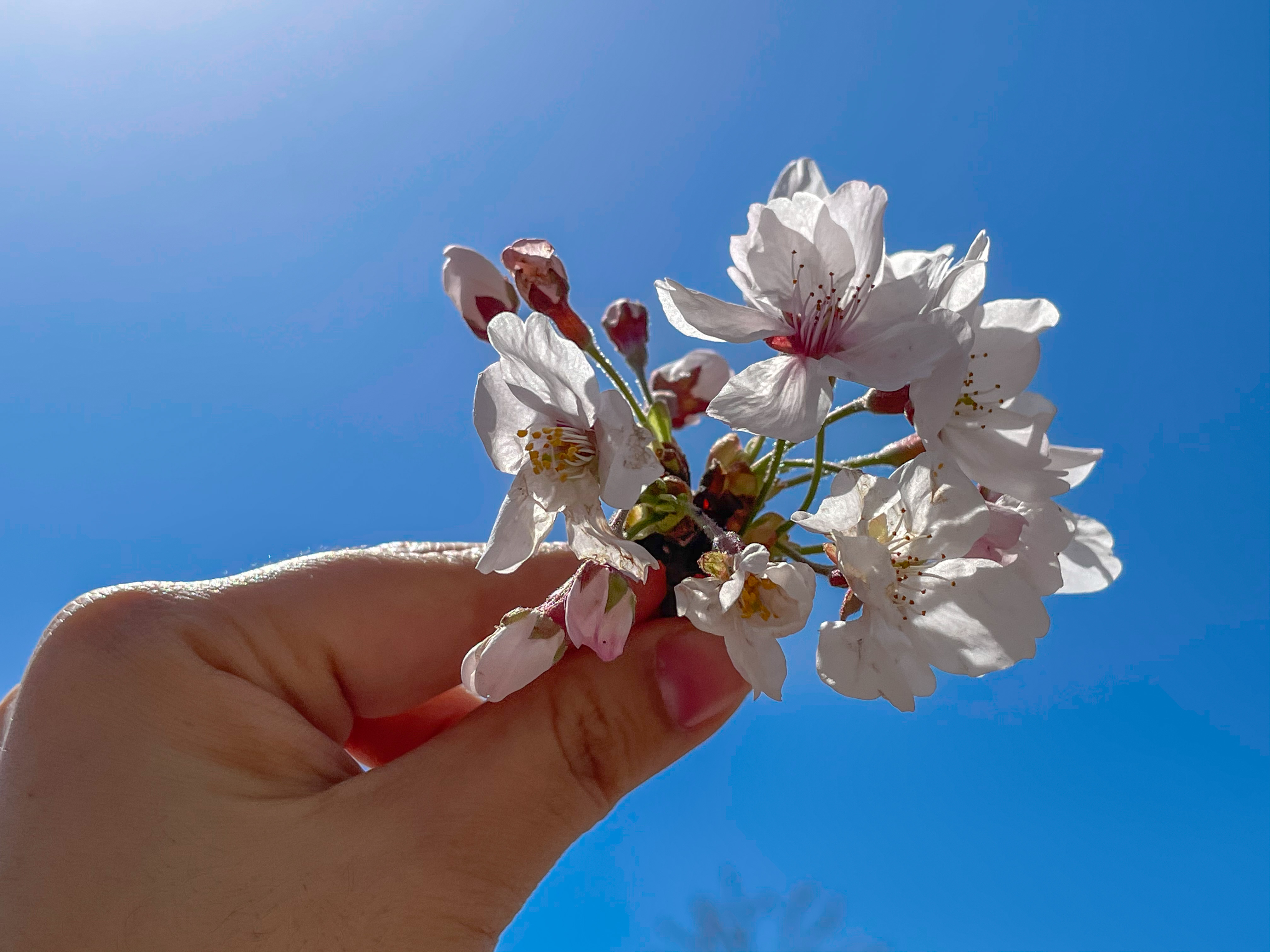 구름 한 점 없는 하늘에 벚꽃을 올려보니 마치 푸른 도화지위에 아름다운 작품을 수 놓은 것 처럼 보였다. 사람들은 보통 벚나무에 피어있는 수많은 벚꽃나무를 좋아하지만 작가는 벚꽃 한 줌이 주는 아름다움을 표현하고 싶었다.