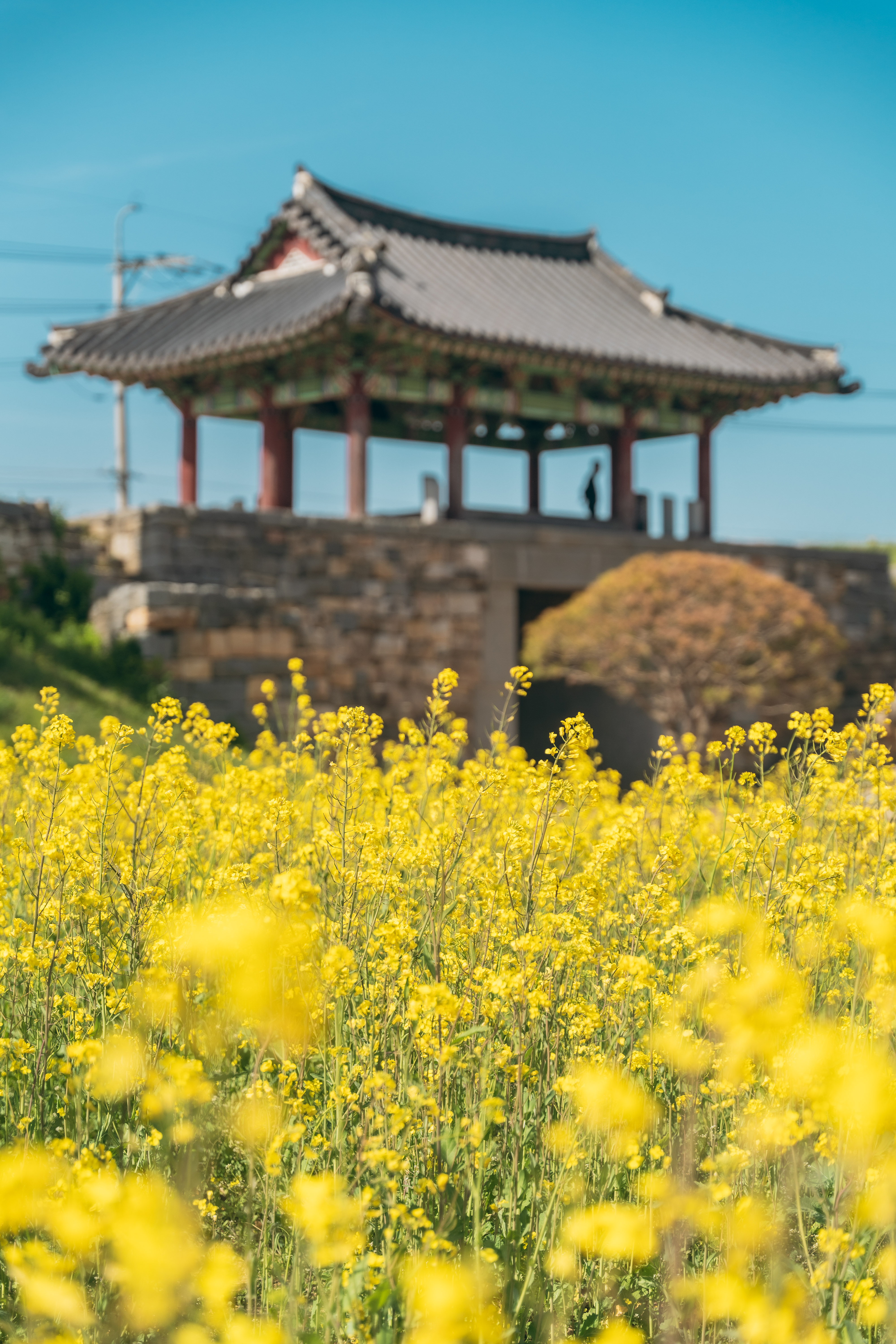 유채꽃이 활짝 핀 해미읍성,지나가다가 우연히 들린 곳에서기대하지 못한 유채꽃을 만나니너무 좋았습니다. 푸른하늘과샛노란 유채꽃이 봄의 싱그러움을더해 주는 것 같습니다.