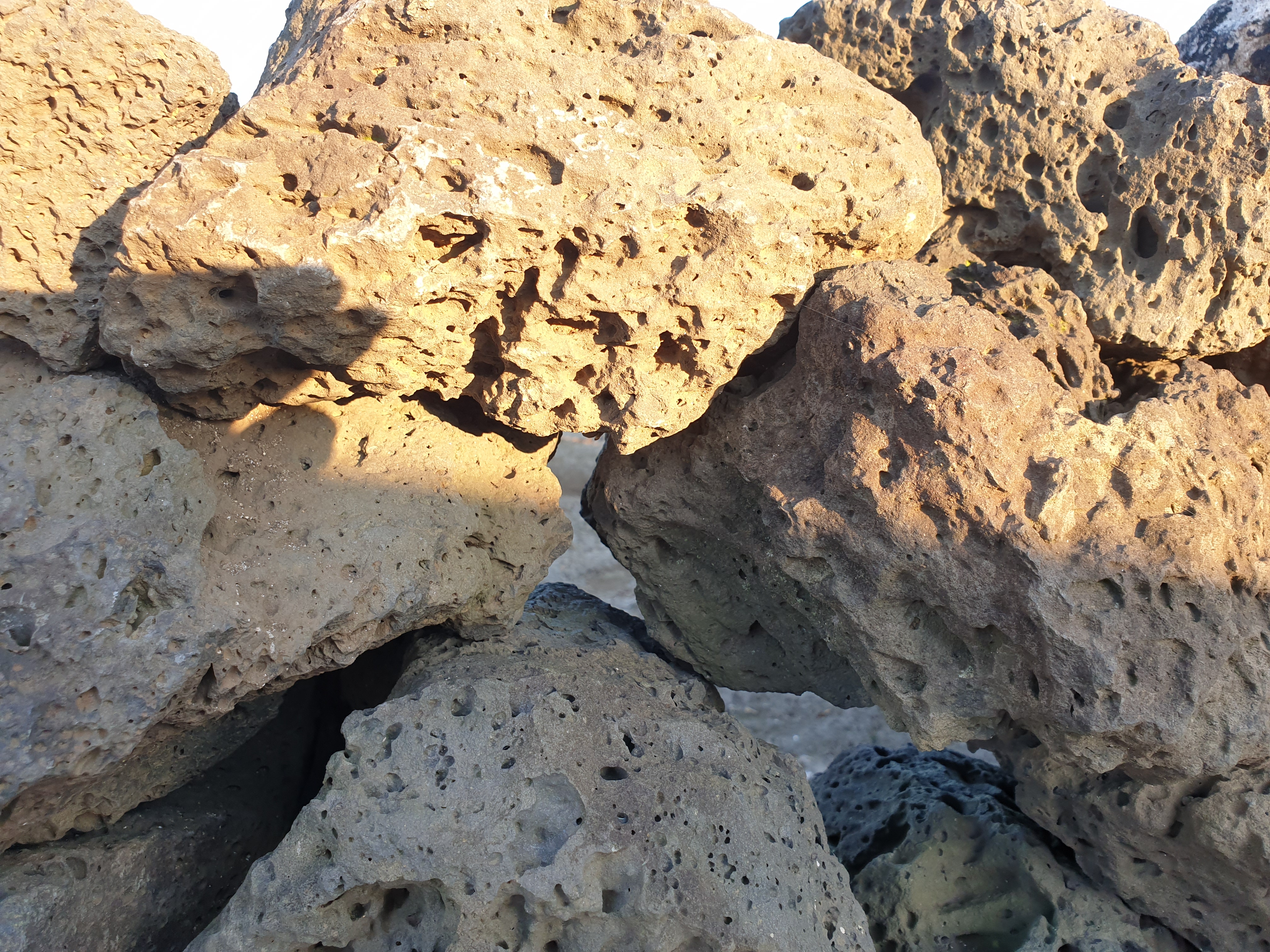 제주도 현무암이 햇빛을 받고있는 모습이다.