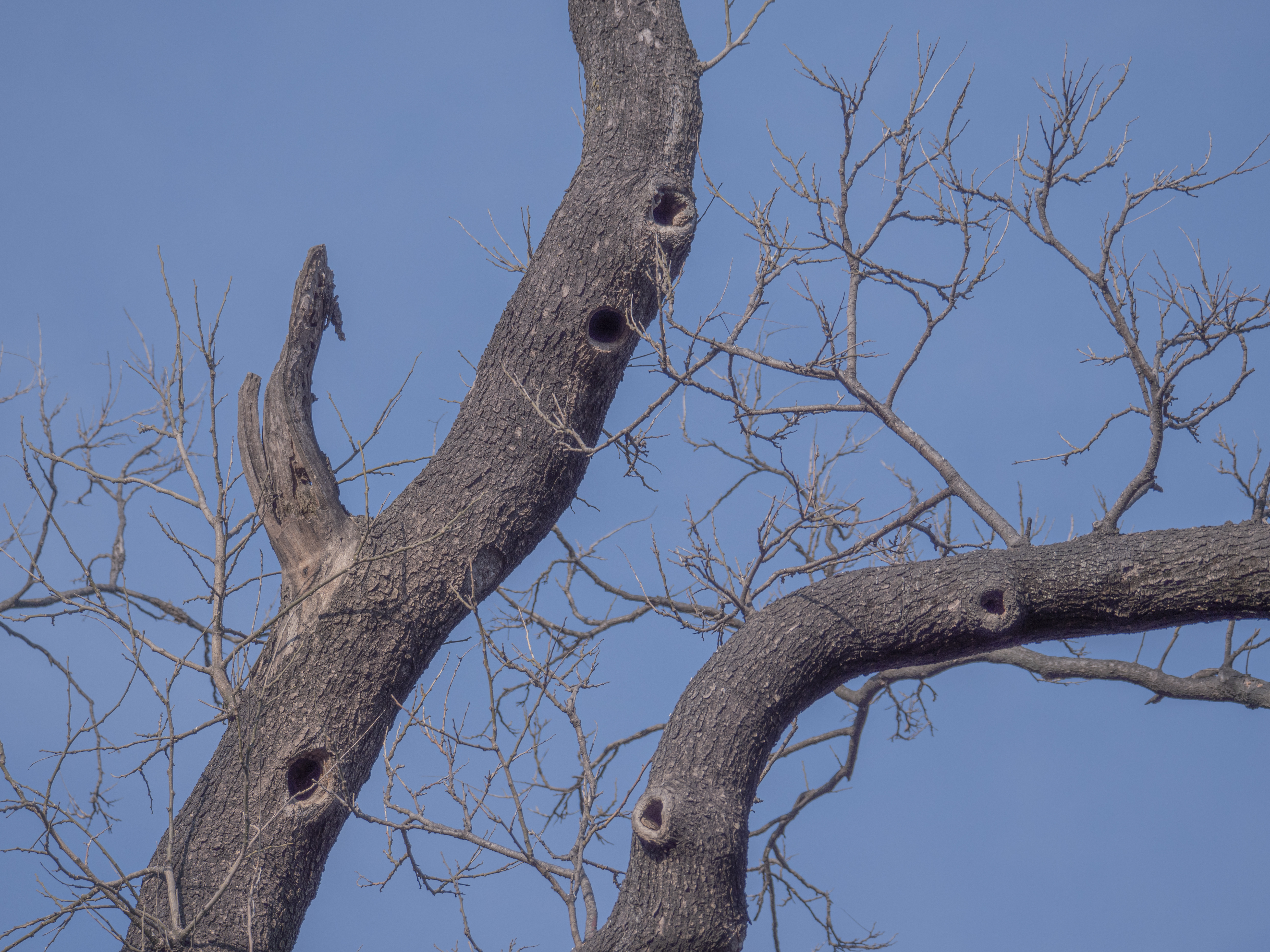 딱따구리가 팠을까, 나무에 남은 구멍들을 보며 전에는 숭고미를 느꼈고 지금은 아픔을 느낀다.
