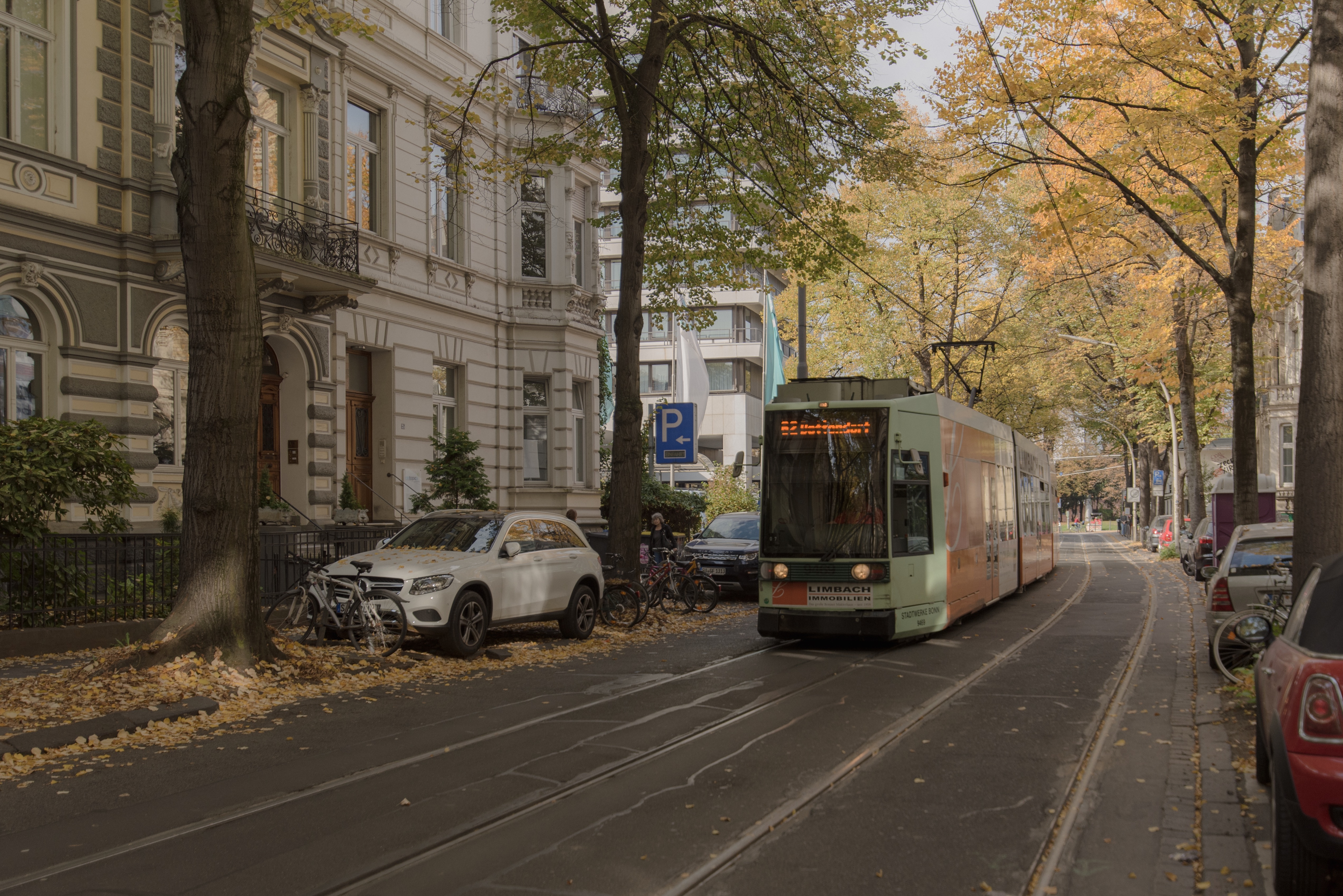 물들어가는 단풍과 타이밍 맞춰 들어오는 트램