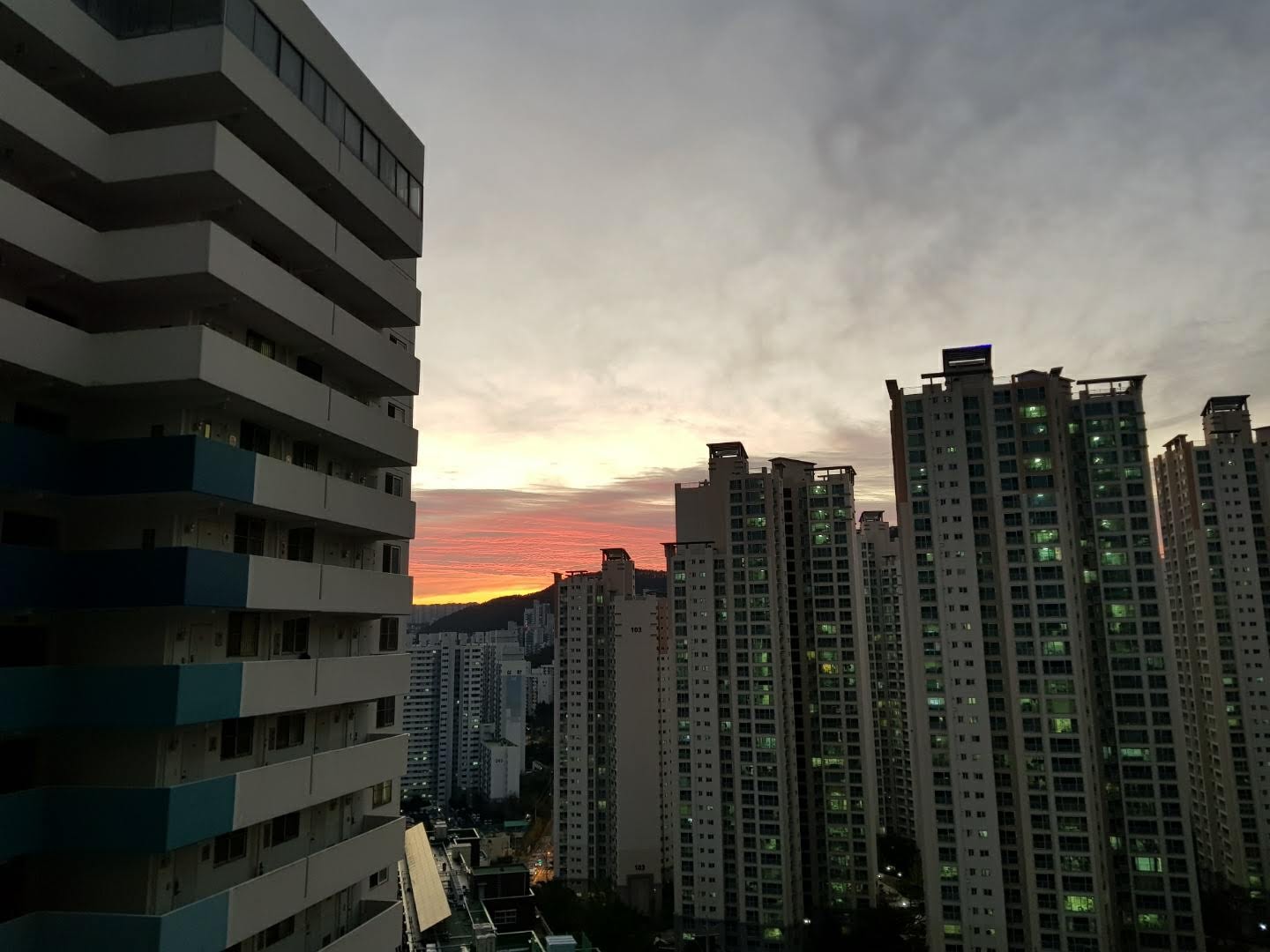 다대포 일몰 아파트 사이로 멋지게 물들인다