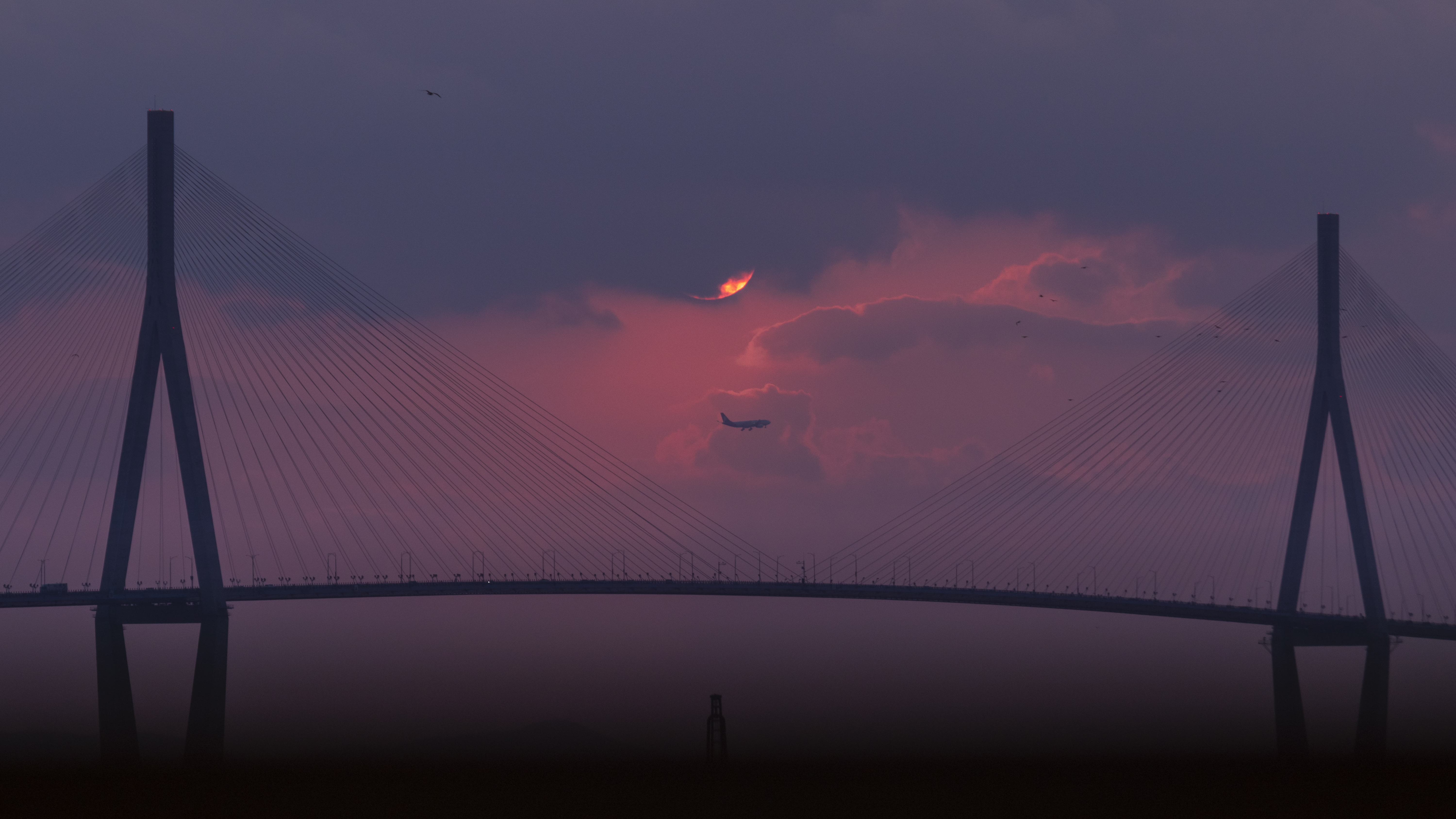 인천대교 일몰과 비행기