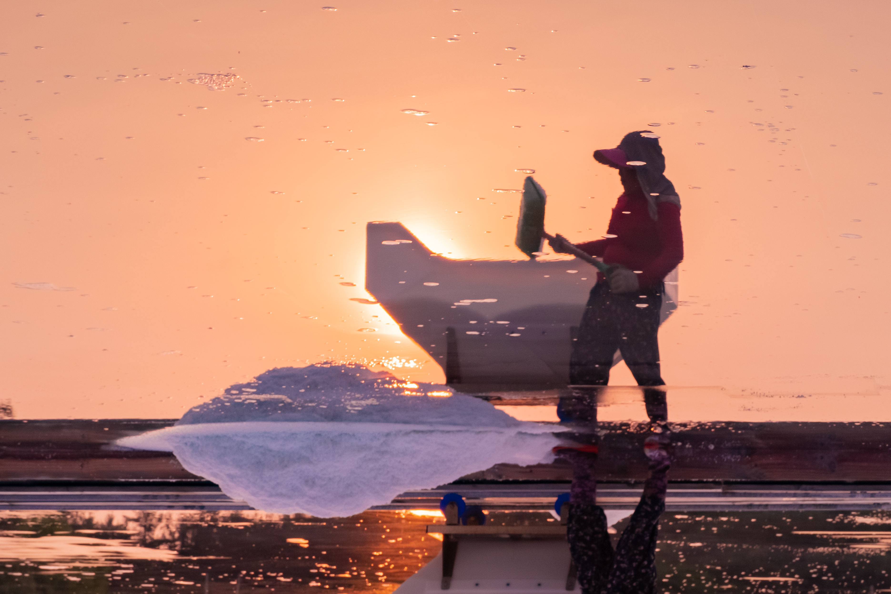석양의 염전 작업