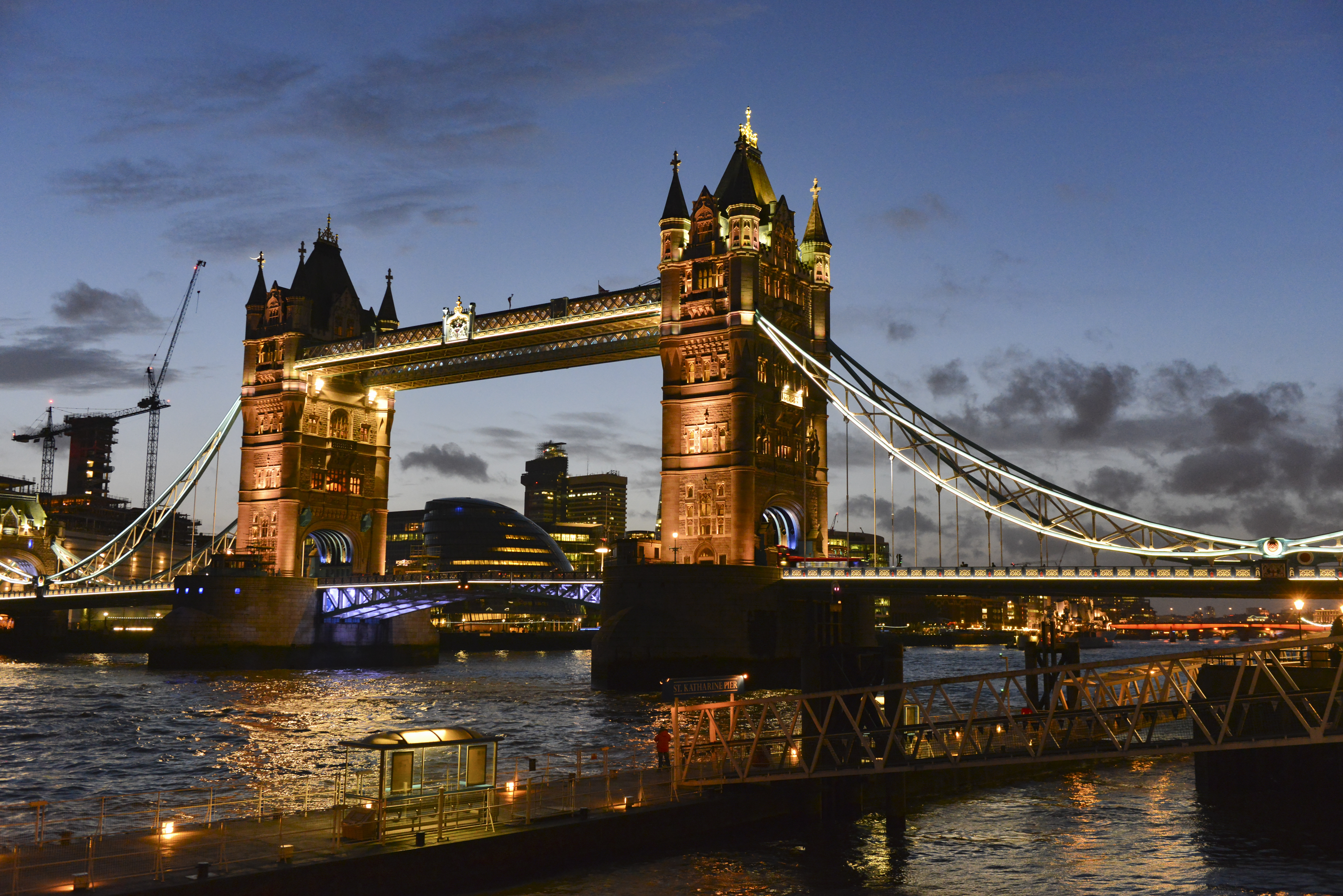 영국 런던 템즈강을 가로지르는 타워브리지 야경입니다.