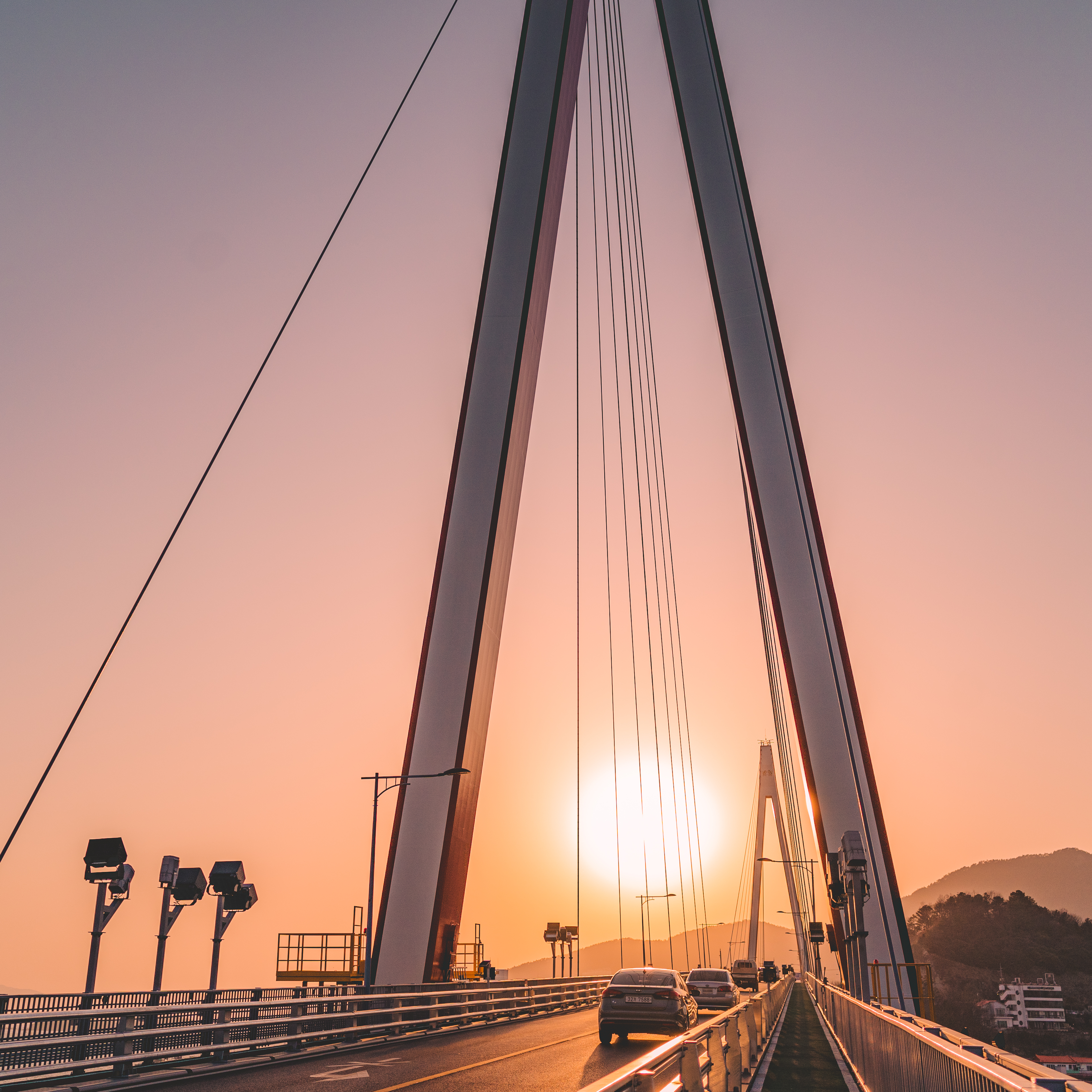 여수 돌산대교를 두발로 걸어 건너면서 만난 석양