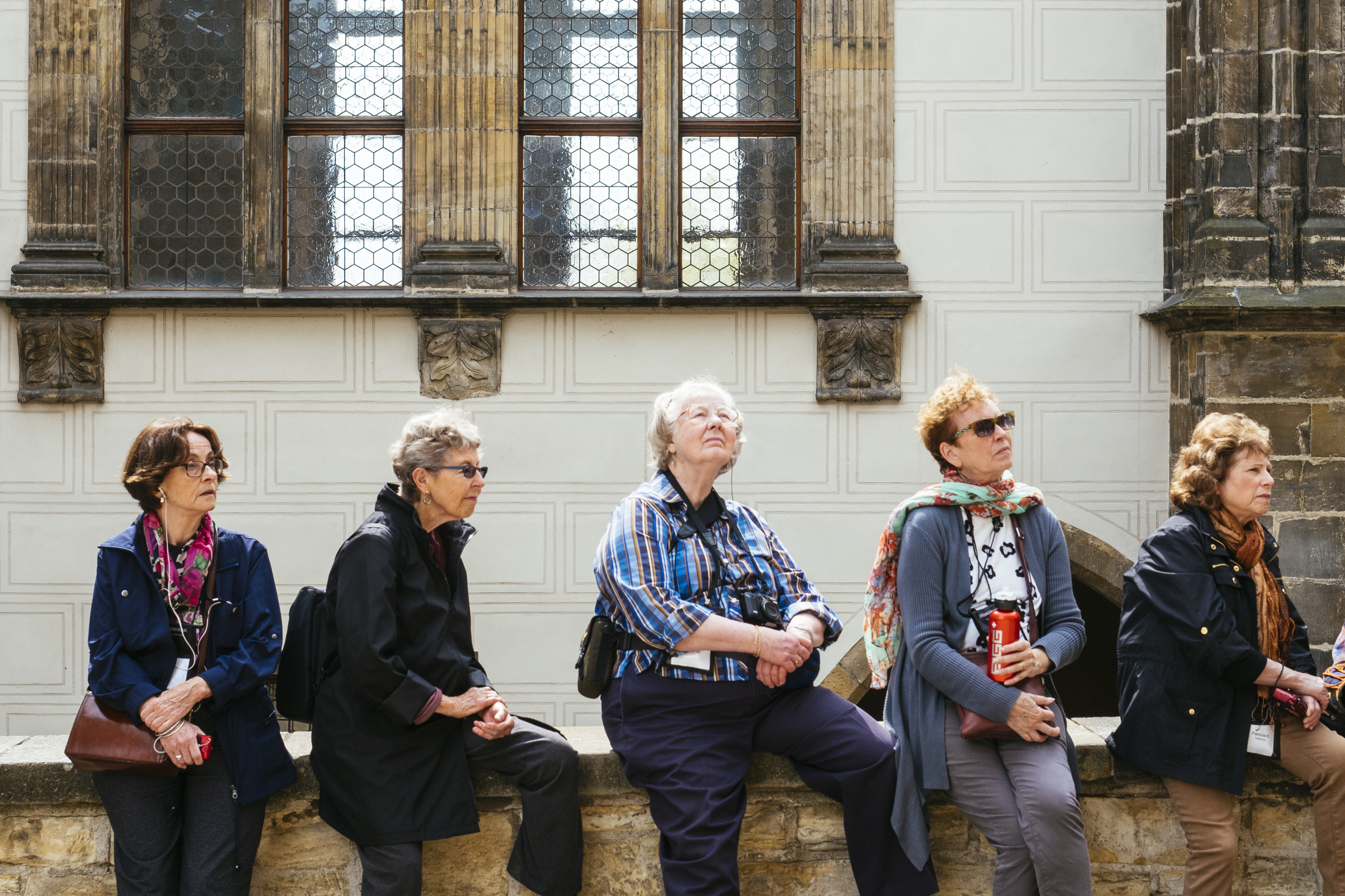 여행 중 잠시 휴식을 취하는 사람들의 풍경