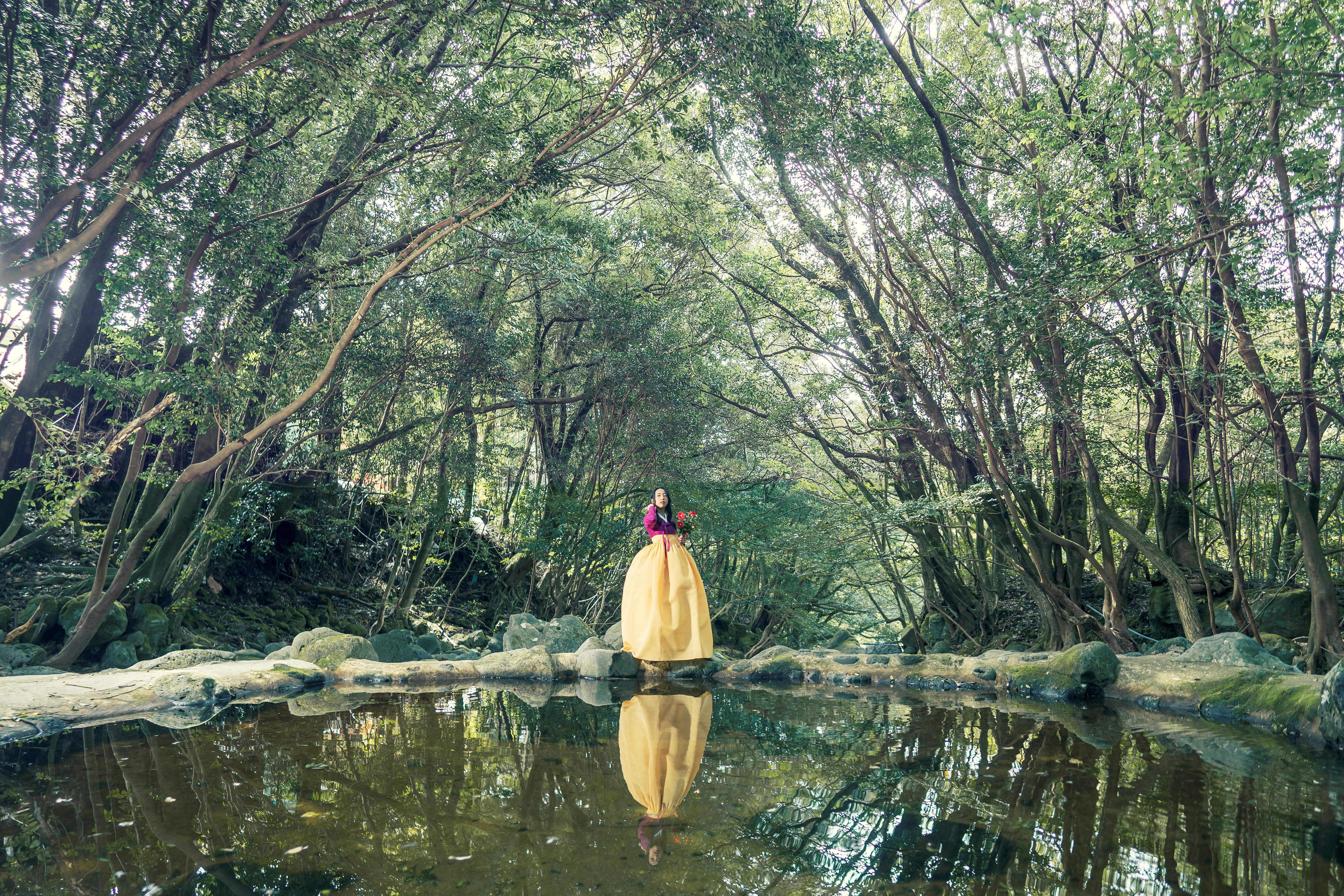제주의 숲속에서 한복을 반영과 함께 담아봤습니다.