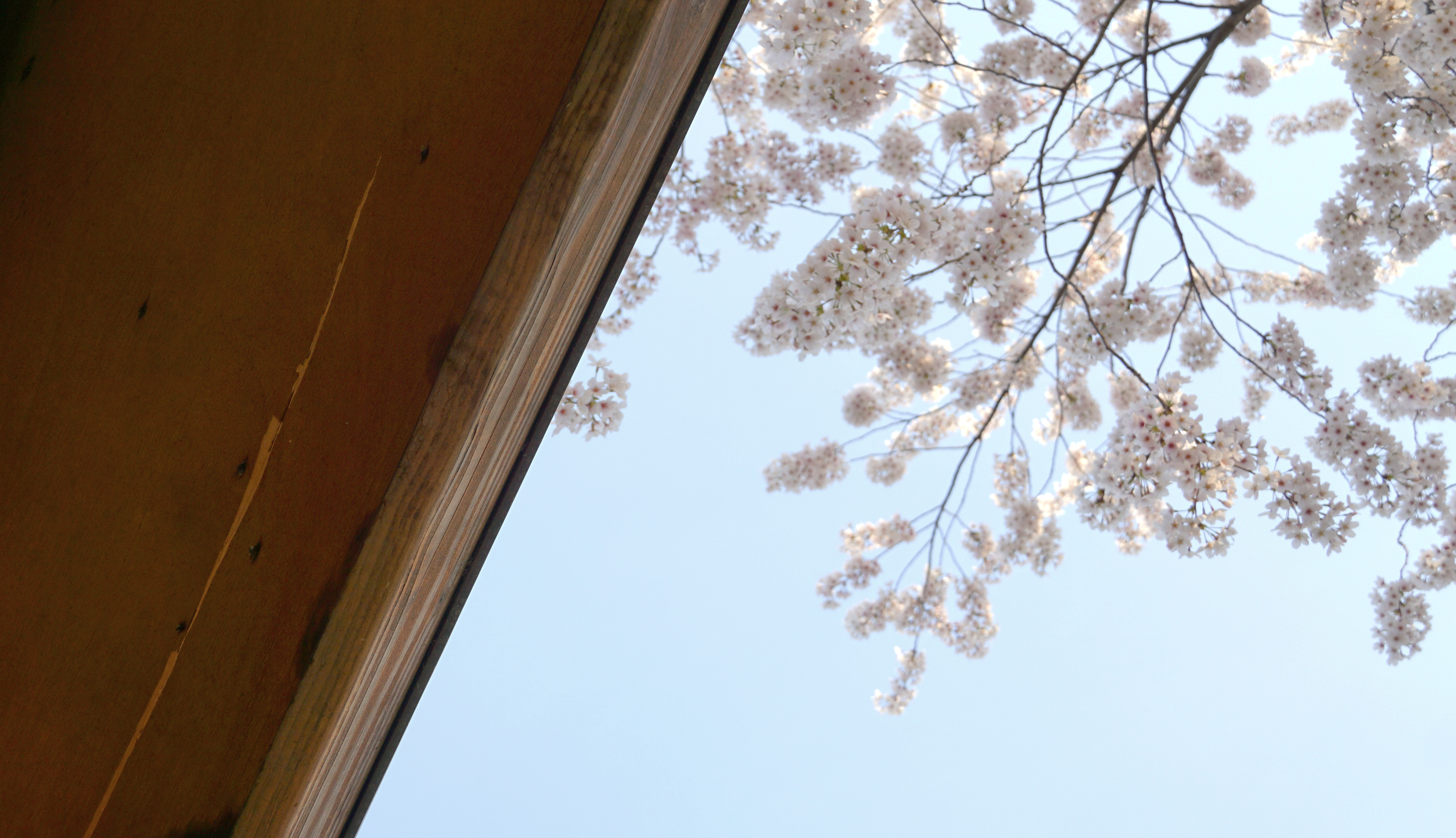 벚꽃 피는 봄. 하늘을 바라보며