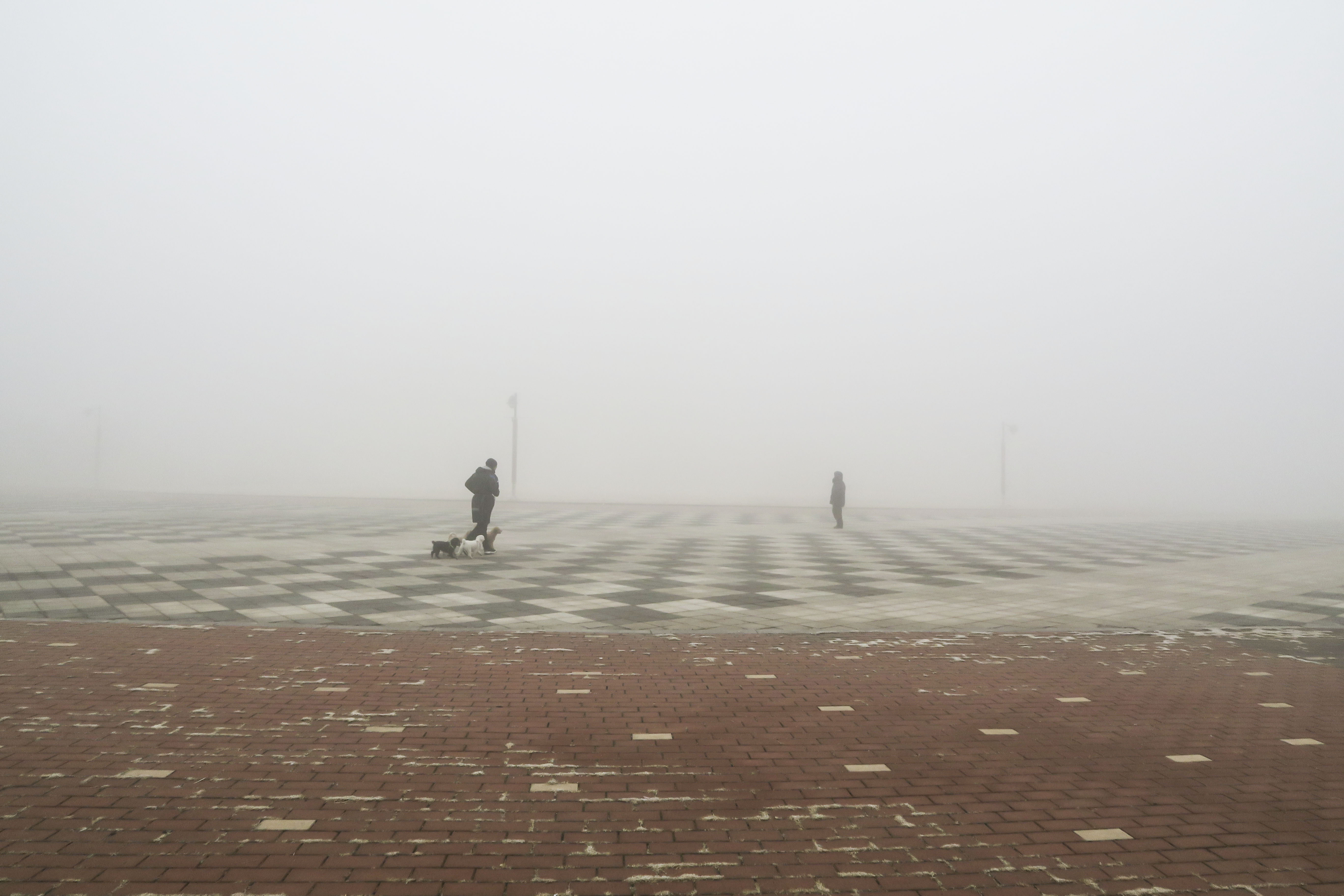 새벽 도시의 안개와 도시인의 고독한 공원 아침안개