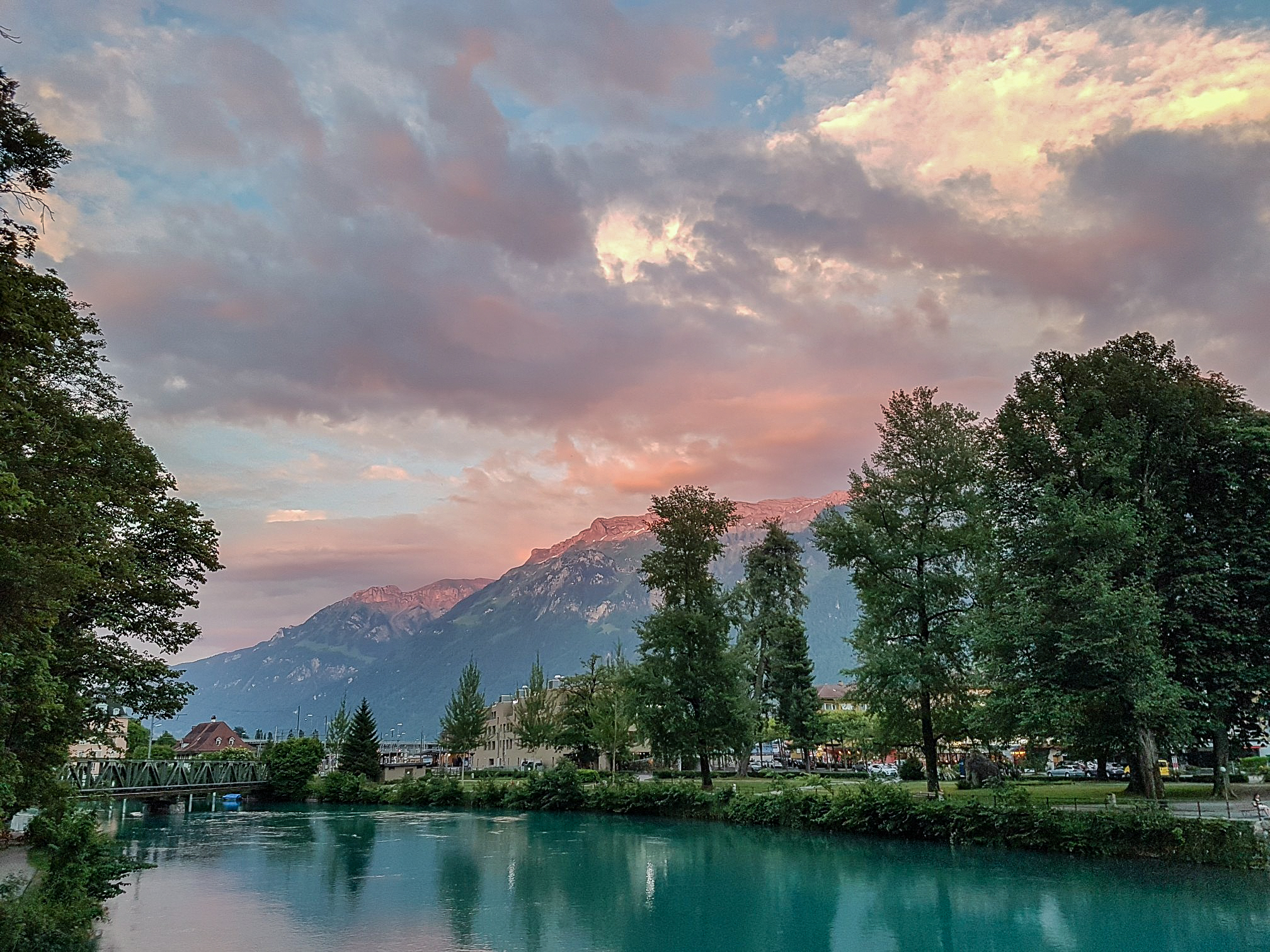 지금은 추억이 되버린 나 홀로 여행갔었던 스위스에서의 일몰 시간입니다.