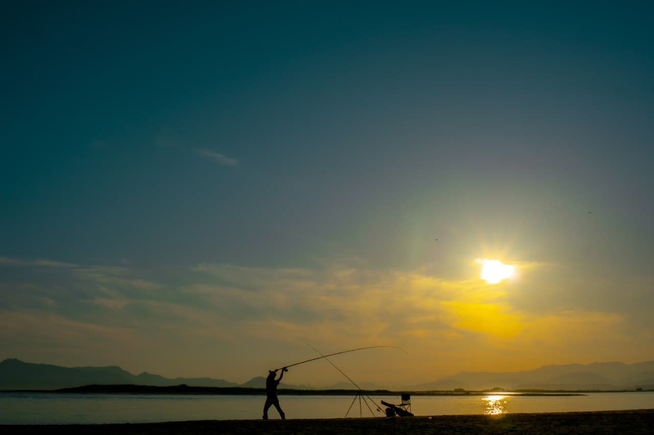 부산 다대포 일몰때 낚시를 하고 계신 분의 모습