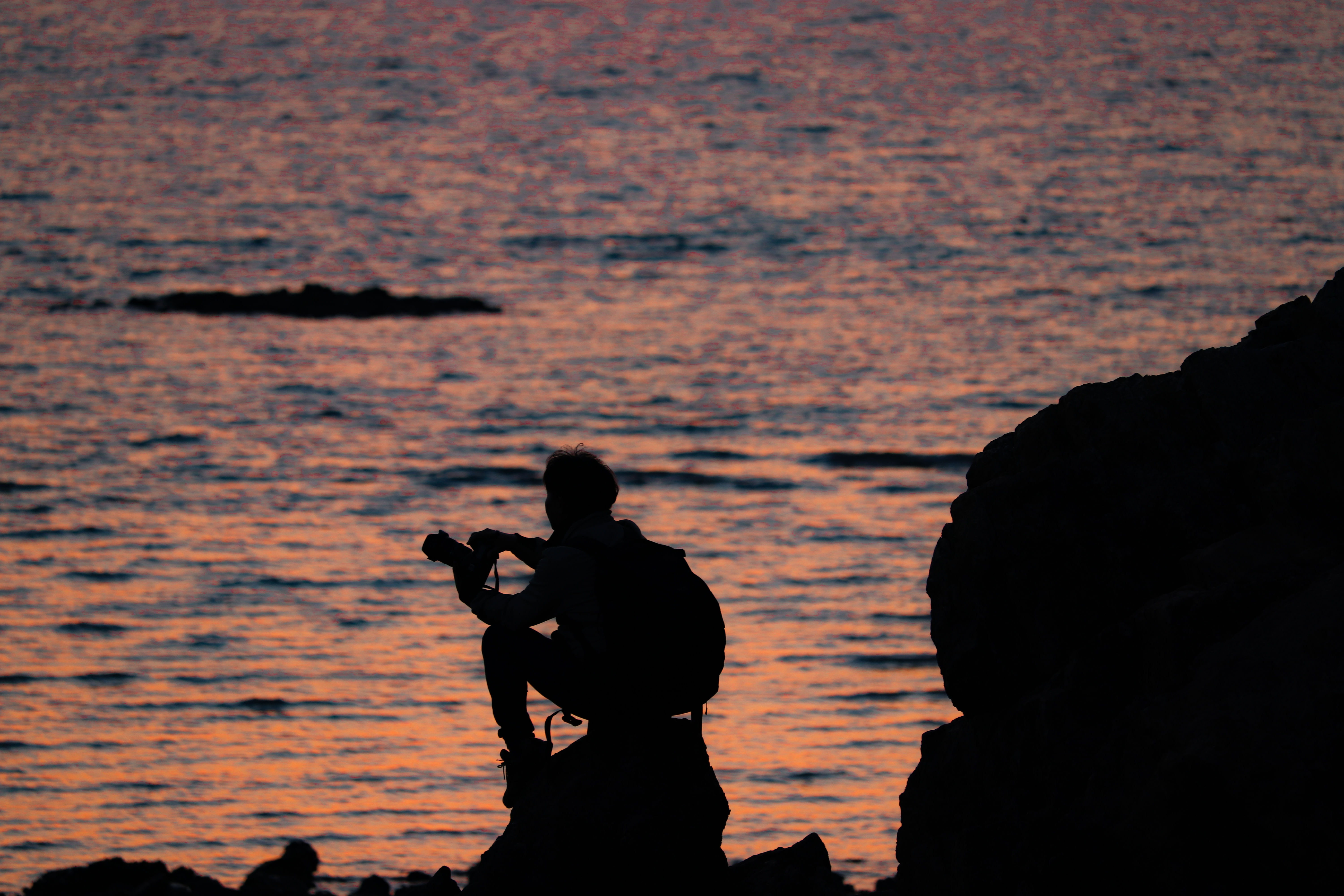 멋진 일몰을 찍기 위해 스팟을 찾아서 일몰 시간을 기다리고 있는 모습입니다.