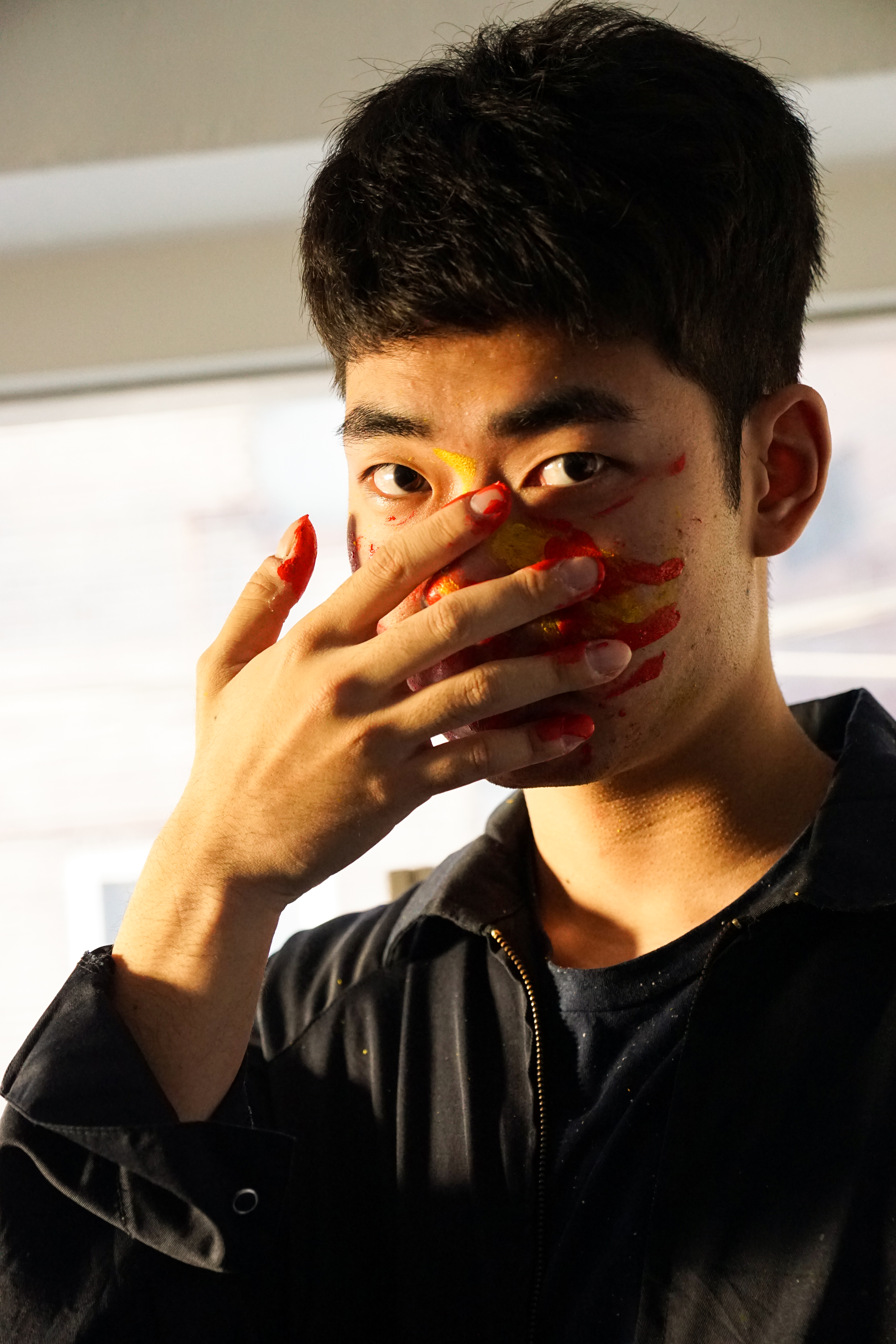 한 화방에서 자연광 아래 물감을 소품으로 사용하여 촬영