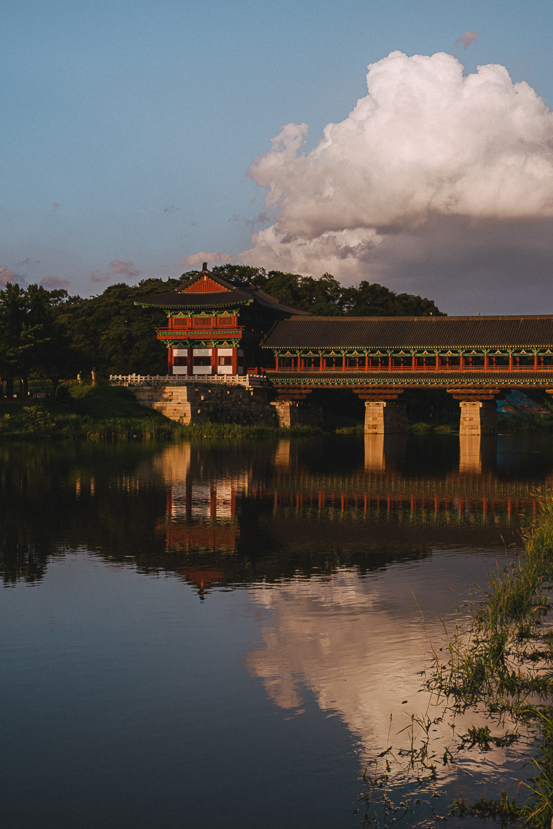 월정교위로 웅장한 구름과 함께 노을빛이 스며들어 정말 멋진 풍경을 볼수 있었습니다