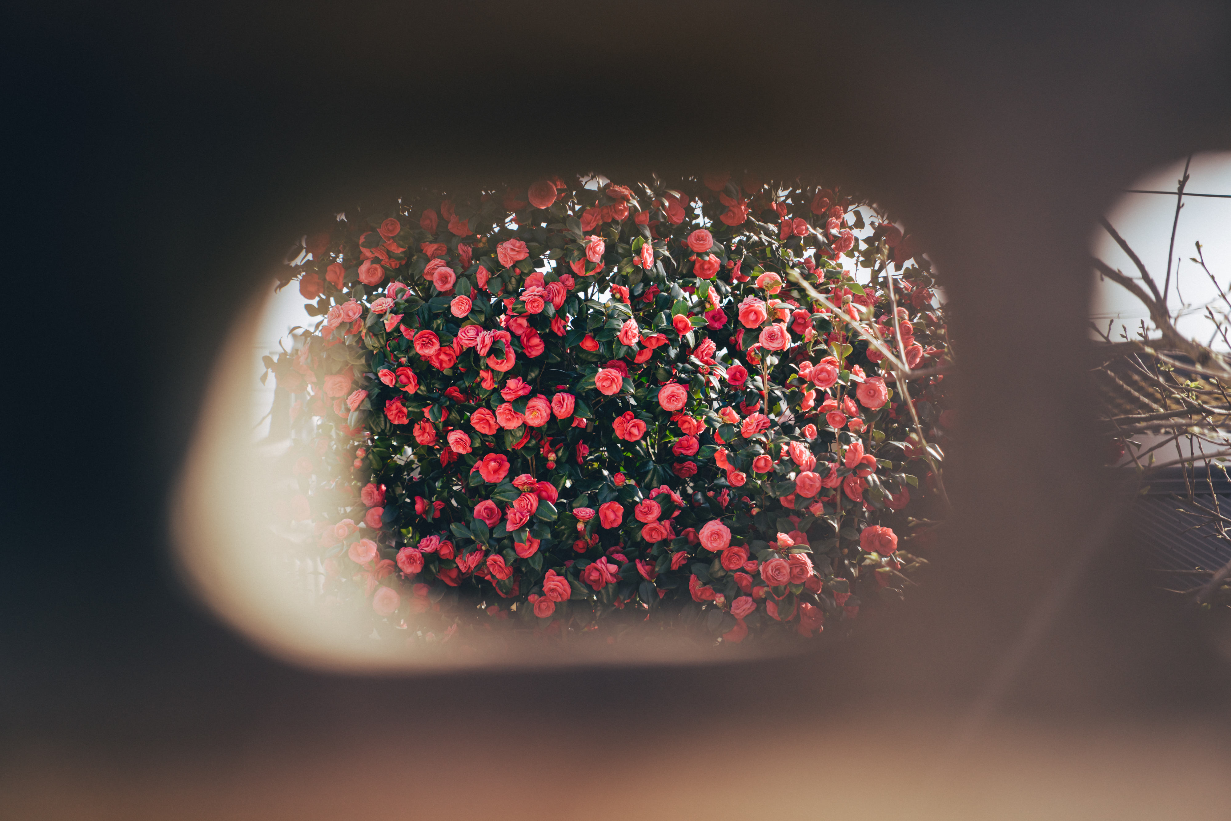 시멘트벽돌구멍 사이로 좋아하는 동백이 보였어요