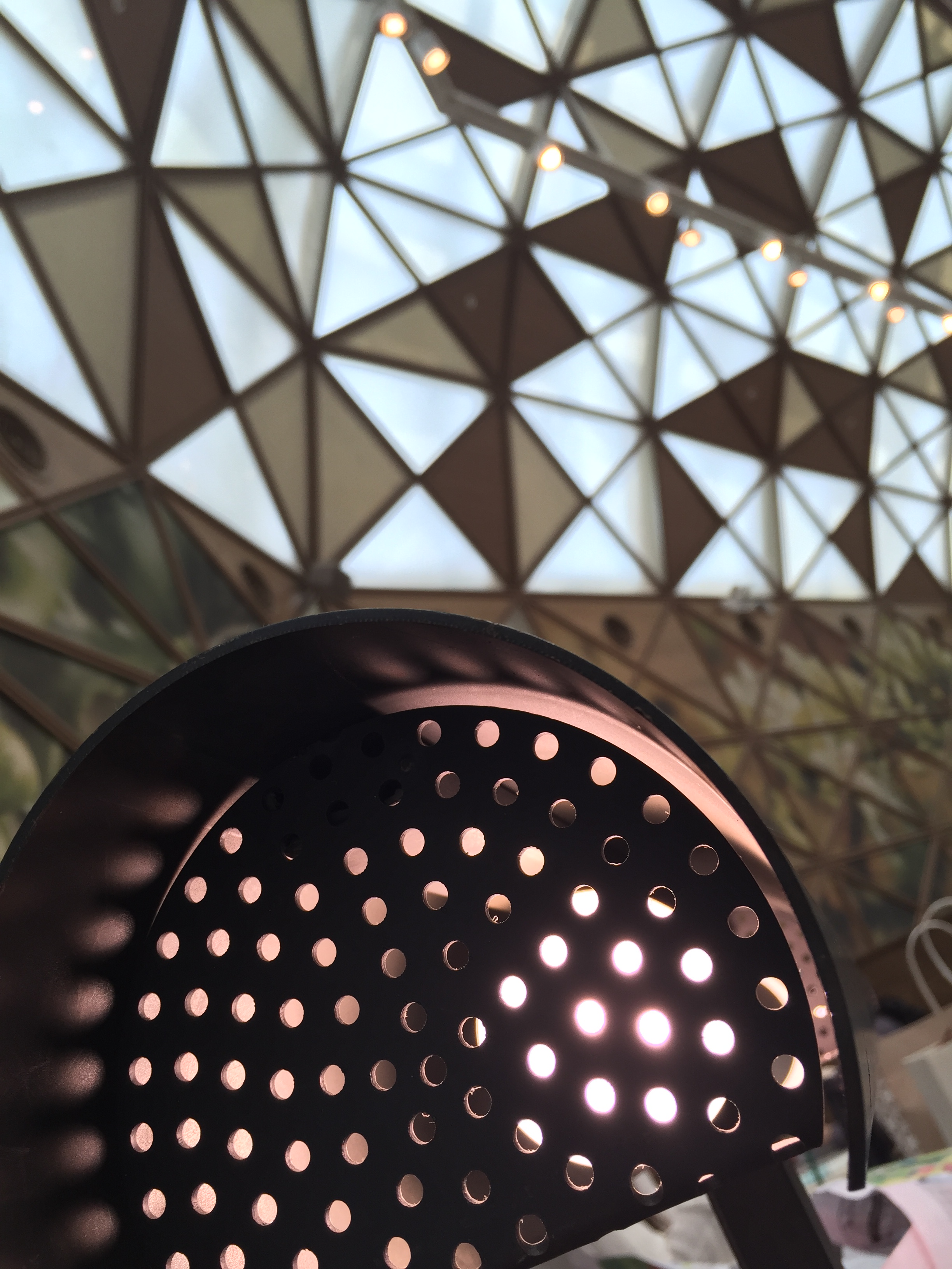 스타벅스 천장과 테이블 스탠드가 어우러져 만들어낸 무늬