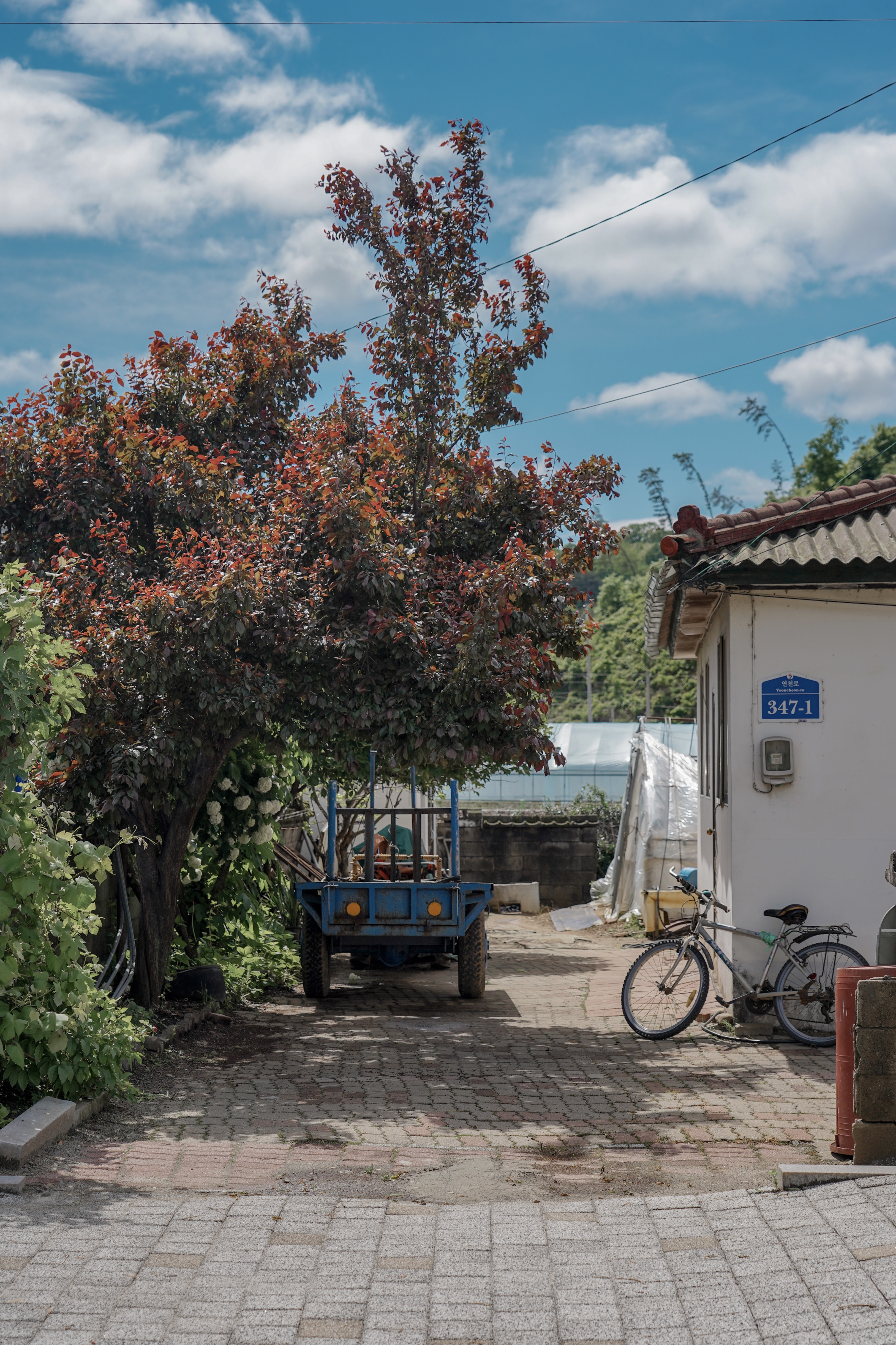 한적하고 푸릇푸릇한 시골의 여름을 표현한 사진입니다.