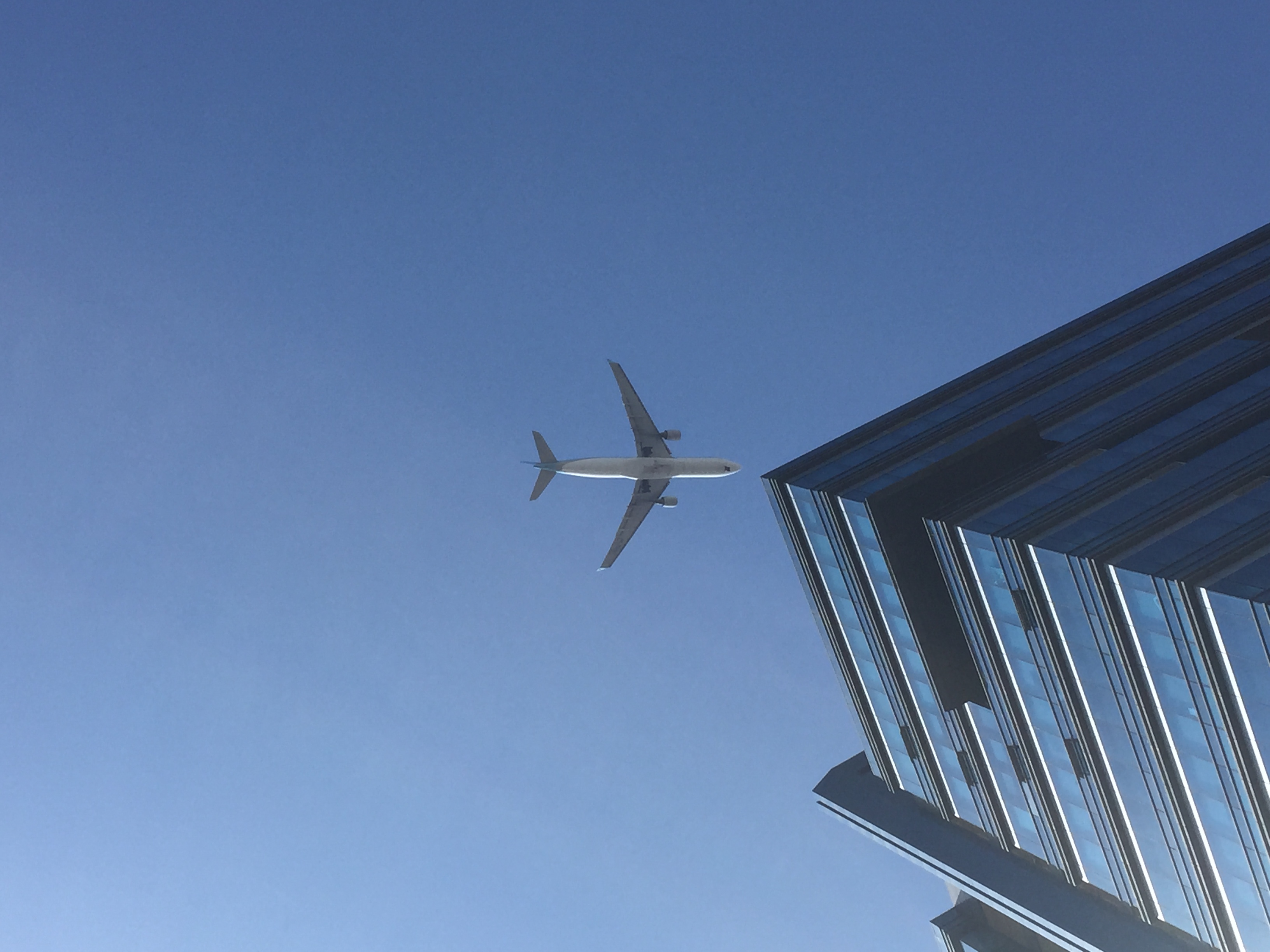 회사 빌딩위를 날아가는 비행기의 찰라의 순간!