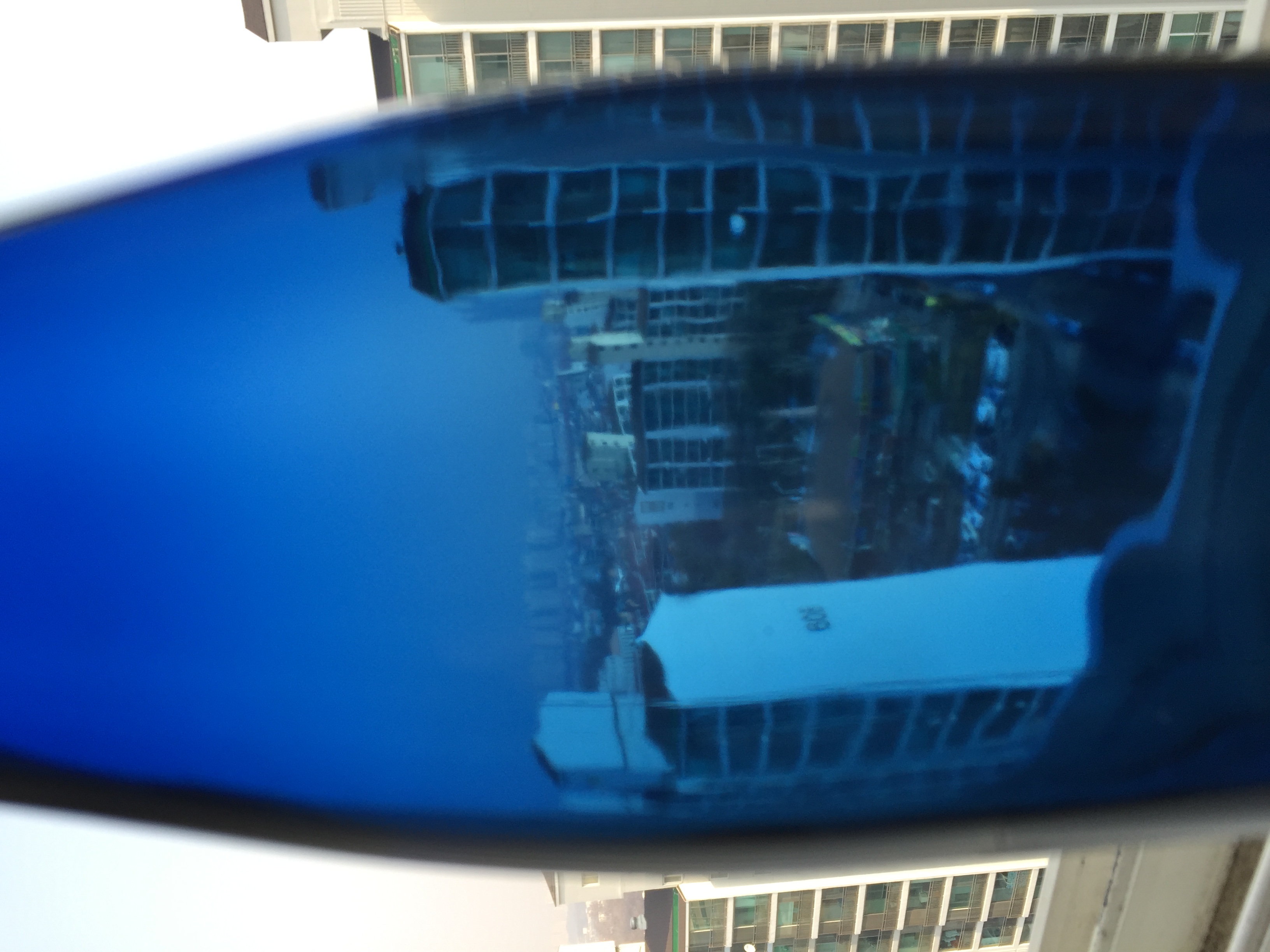 파란색 와인병을 렌즈 필터인양 사진을 찍어 보았다.