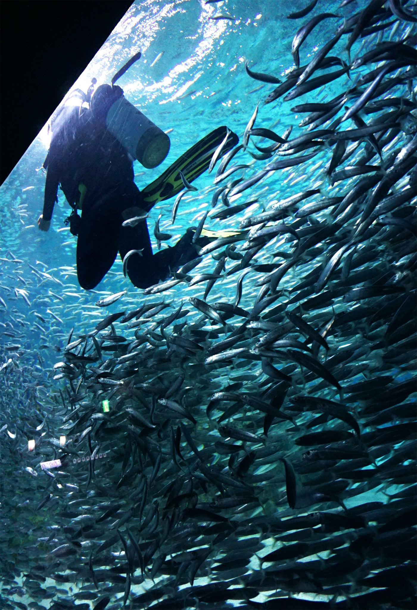 청소를 마치고 수조 밖으로 돌아가는 아쿠아리스트