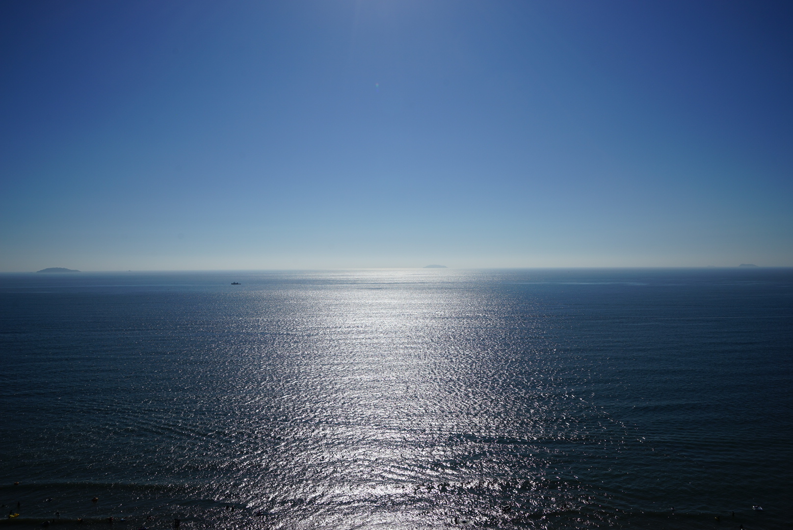 뜨거운 태양 빛에 반짝이는 푸른 바다가 눈부시게 이쁜 바다