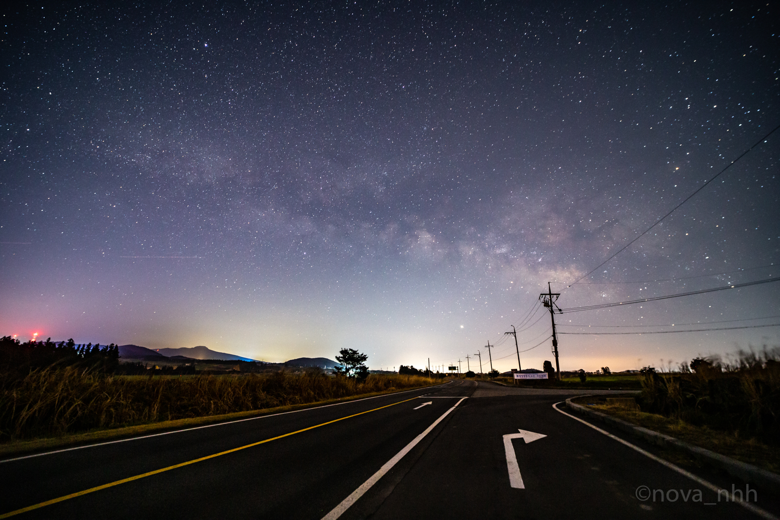 은하수가 뜬 제주도 국도변에서 촬영하였습니다