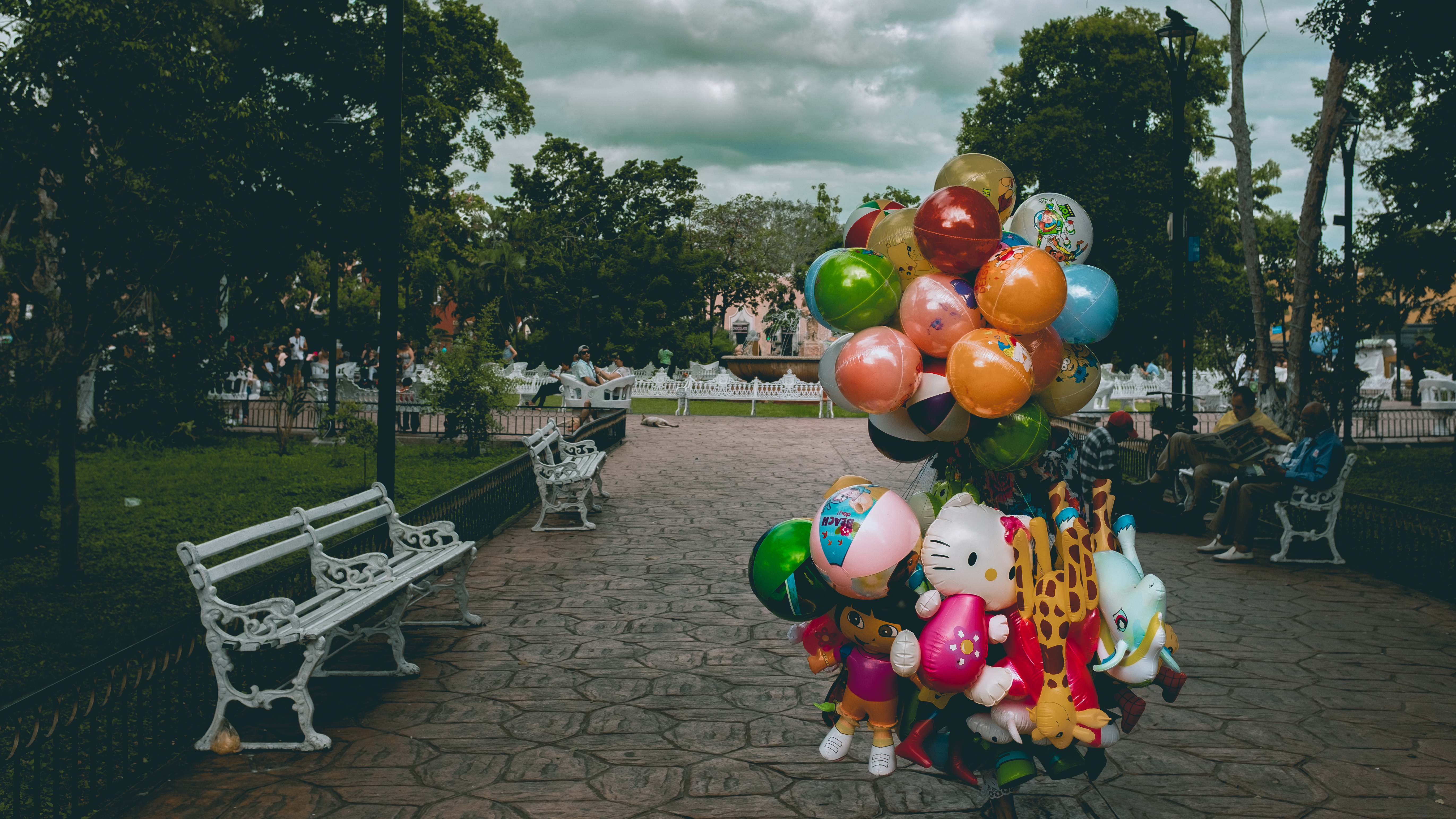 바야돌리드의 한 공원에서 풍선을 파는 사람