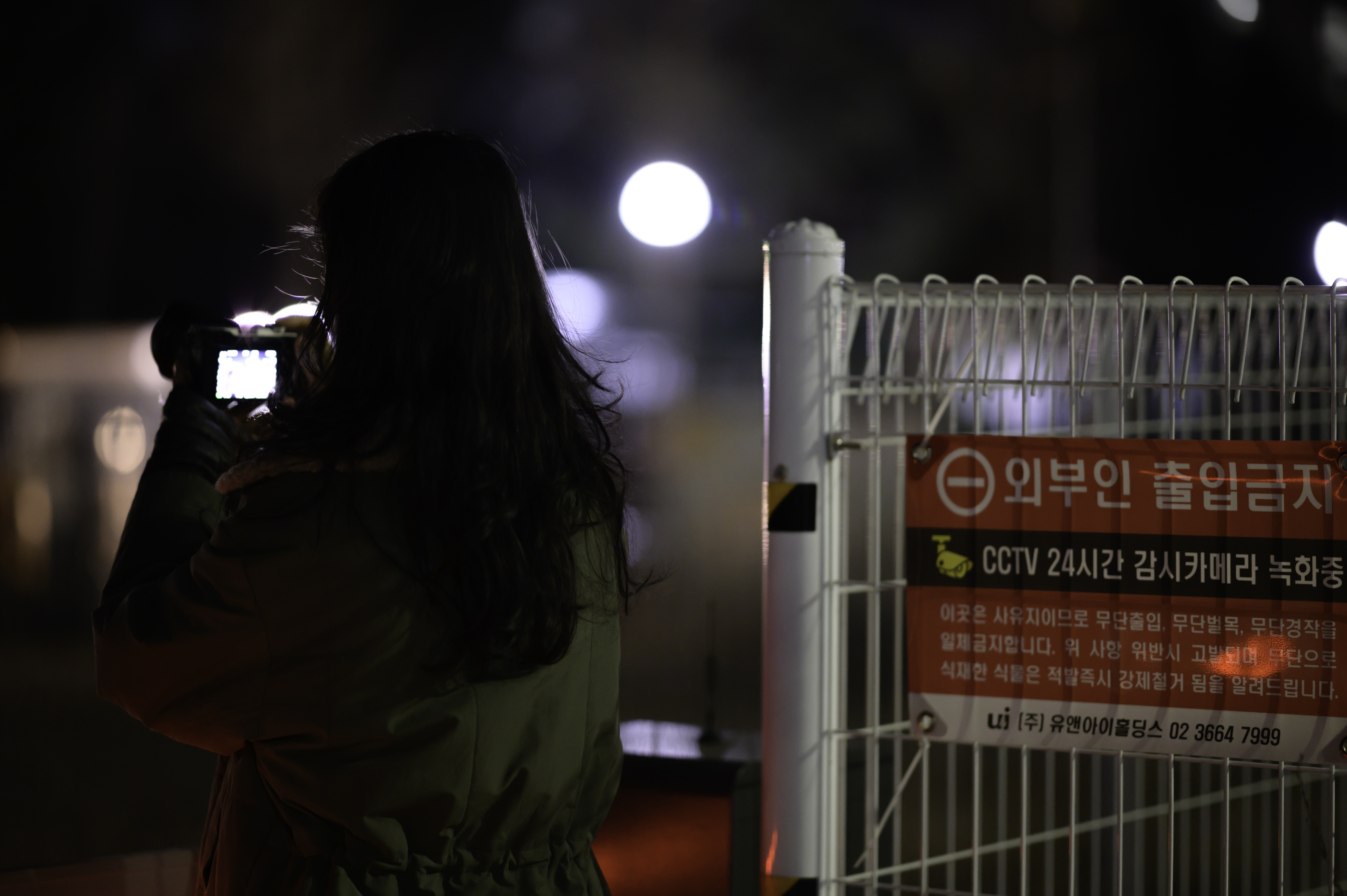 집 근처 산책 중에 24시간 감시카메라 녹화 중이란 경고문 앞에서 촬영하고 있는 분이 재미있어보여 찍은 사진입니다.