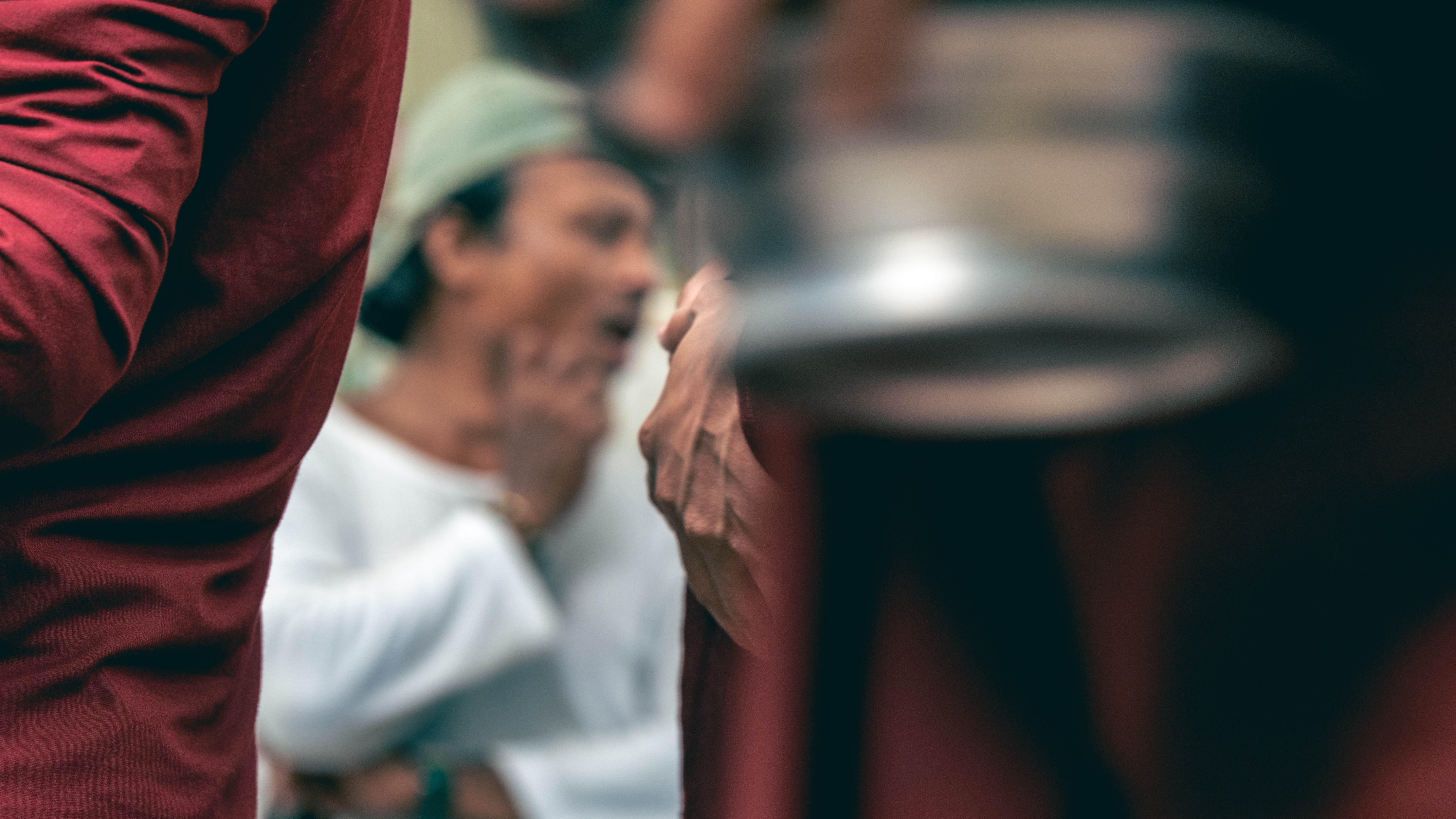 아침 10시 15분. 식사를 위해 늘어선 승려들과 구경꾼