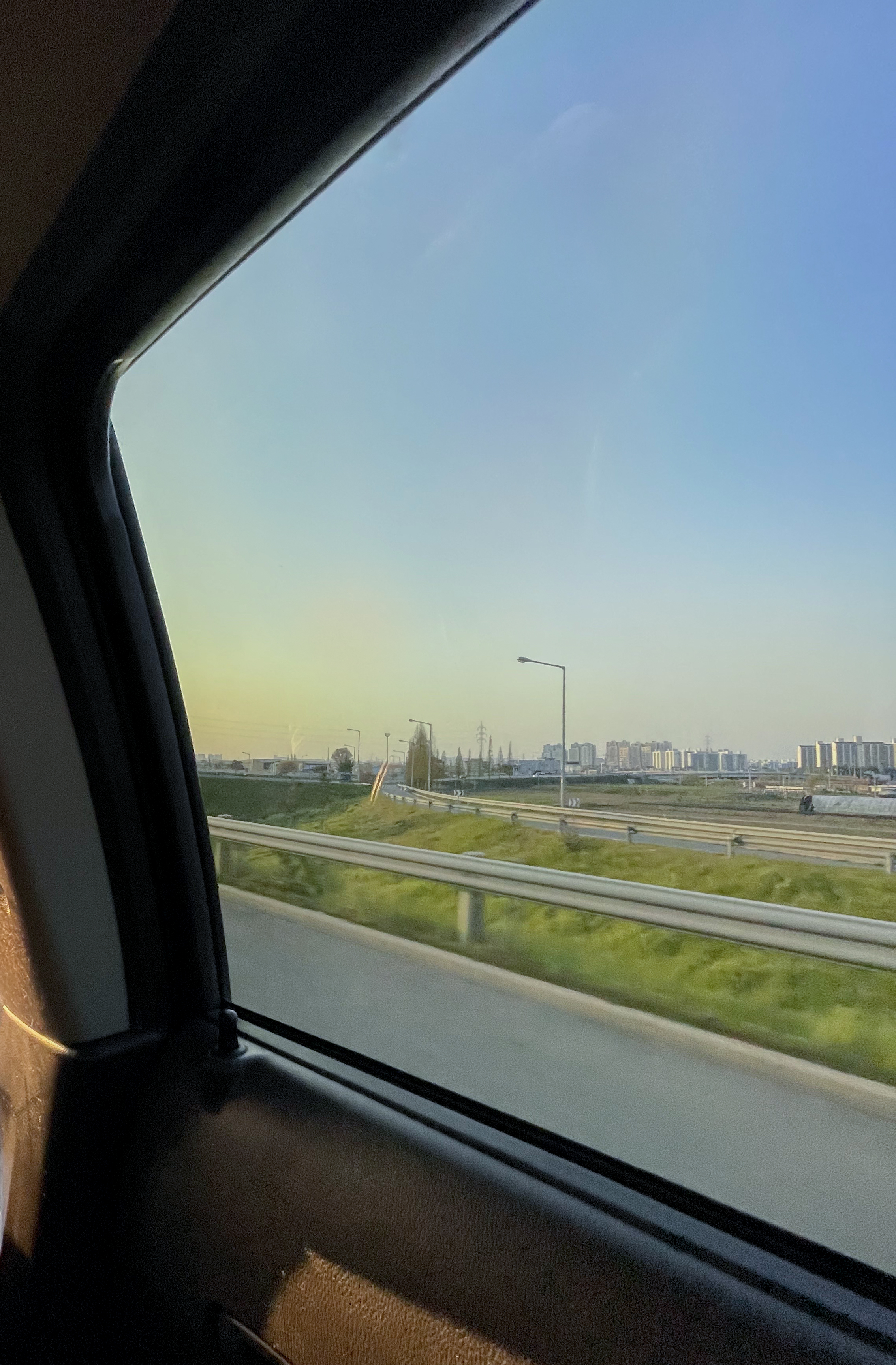 차안에서 본 풍경입니다. 회색 아스팔트 사이에 보이는 파릇파릇함이 가슴을 설레게 하네요.