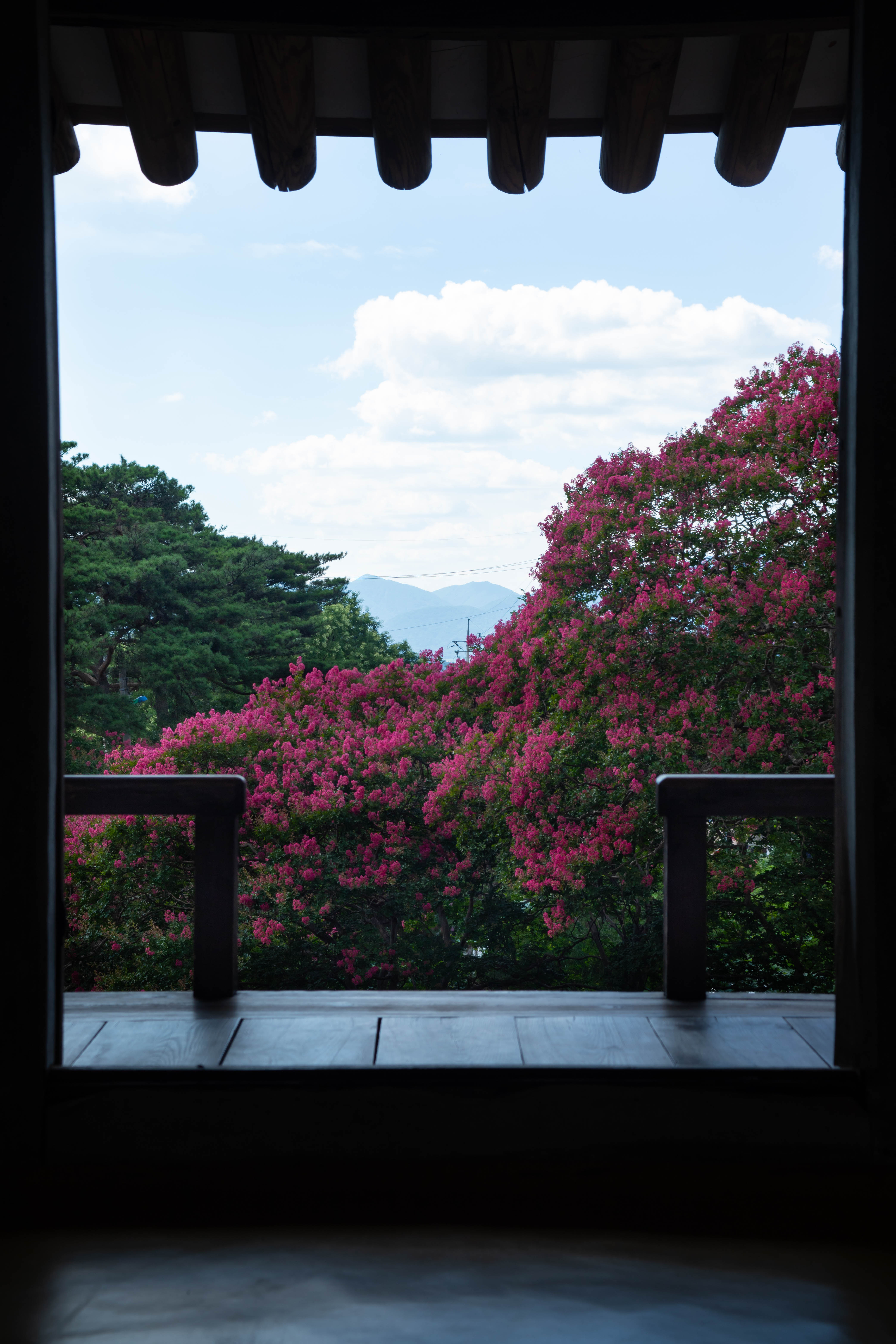 명옥헌 정자 위에서 바라본 배롱나무 풍경