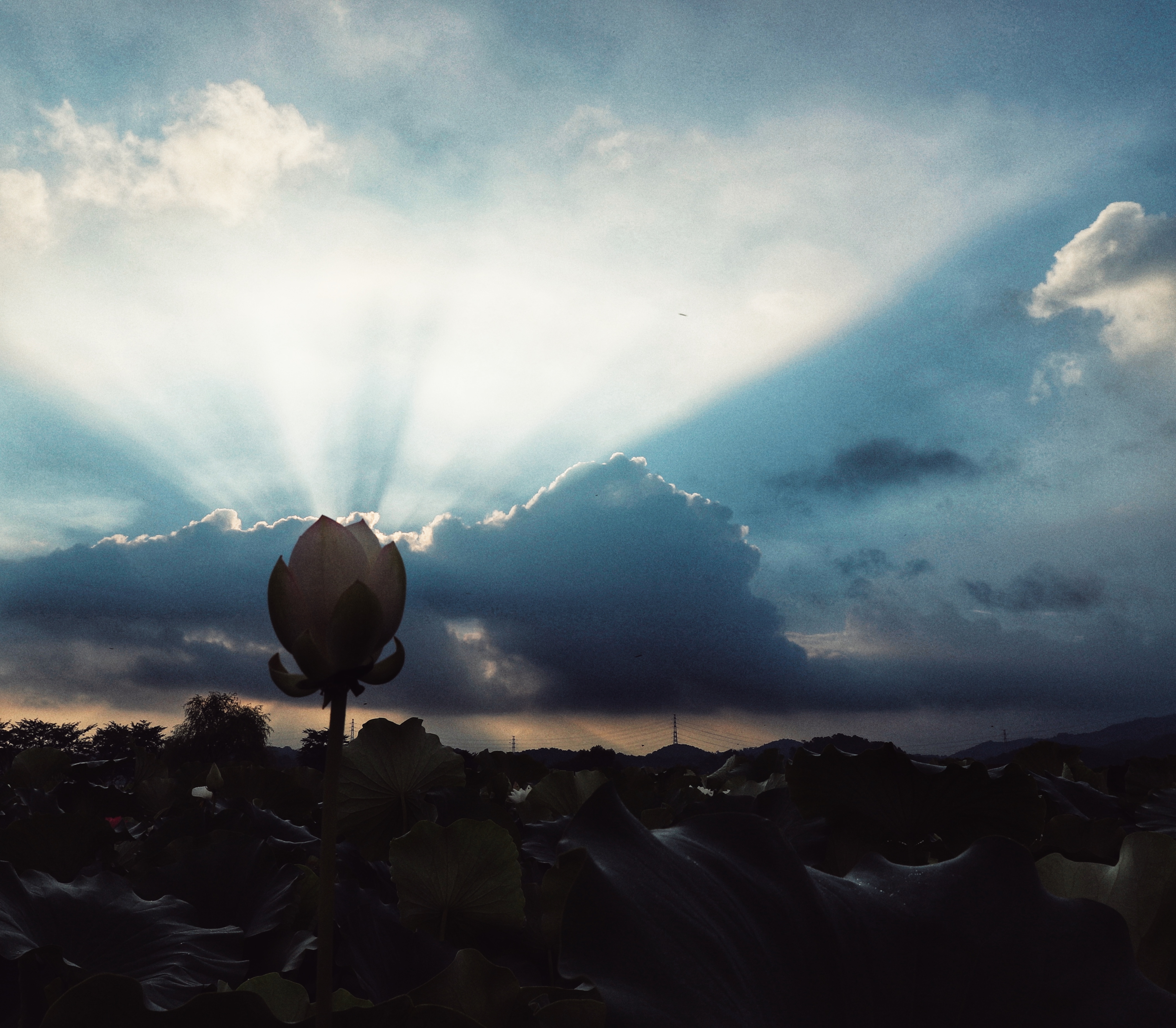 일출 직후 구름위로 뻗어나는 빛을 순간적으로 담이 냄
