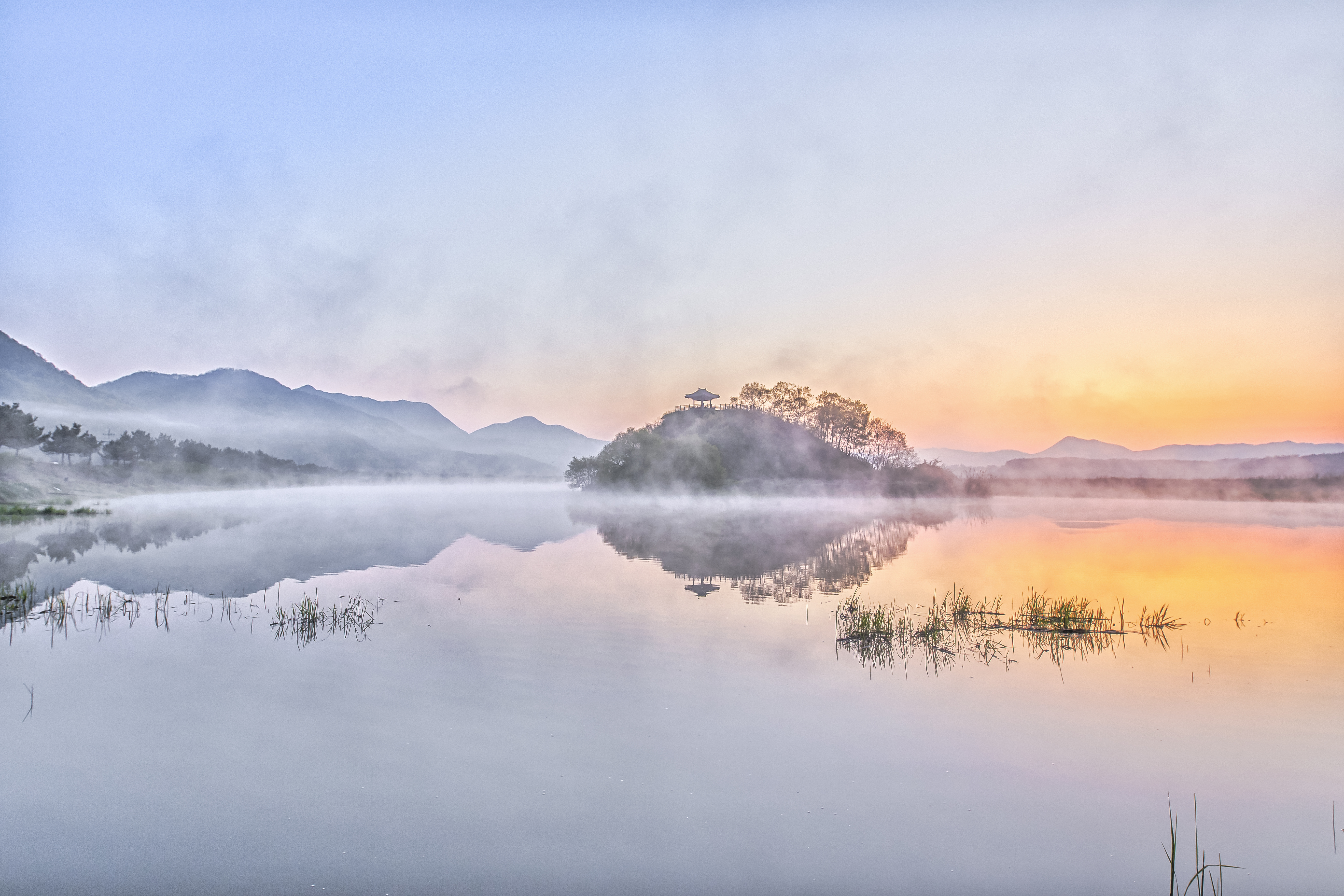 청성보에 위치한 상춘정의 아침을 물안개와 함께 담아봄