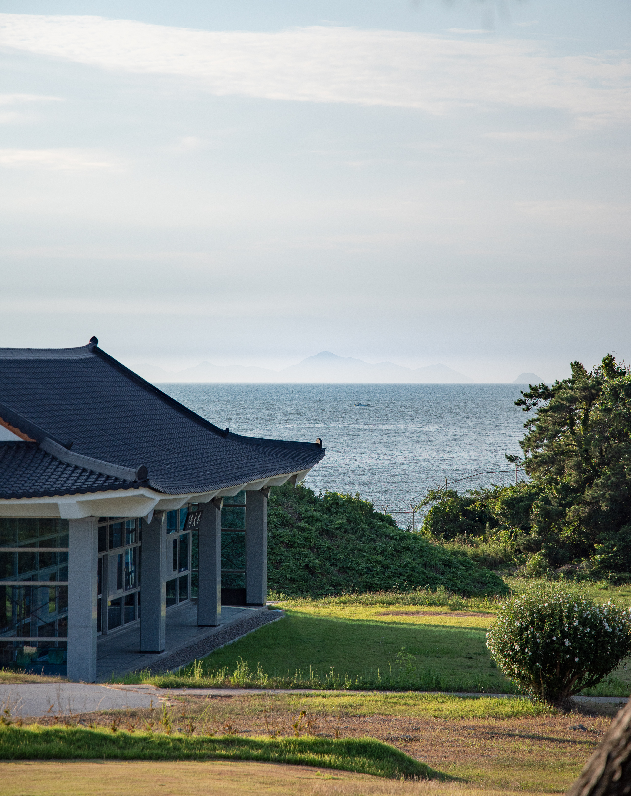 양궁장과 바다를 함께하는 풍경