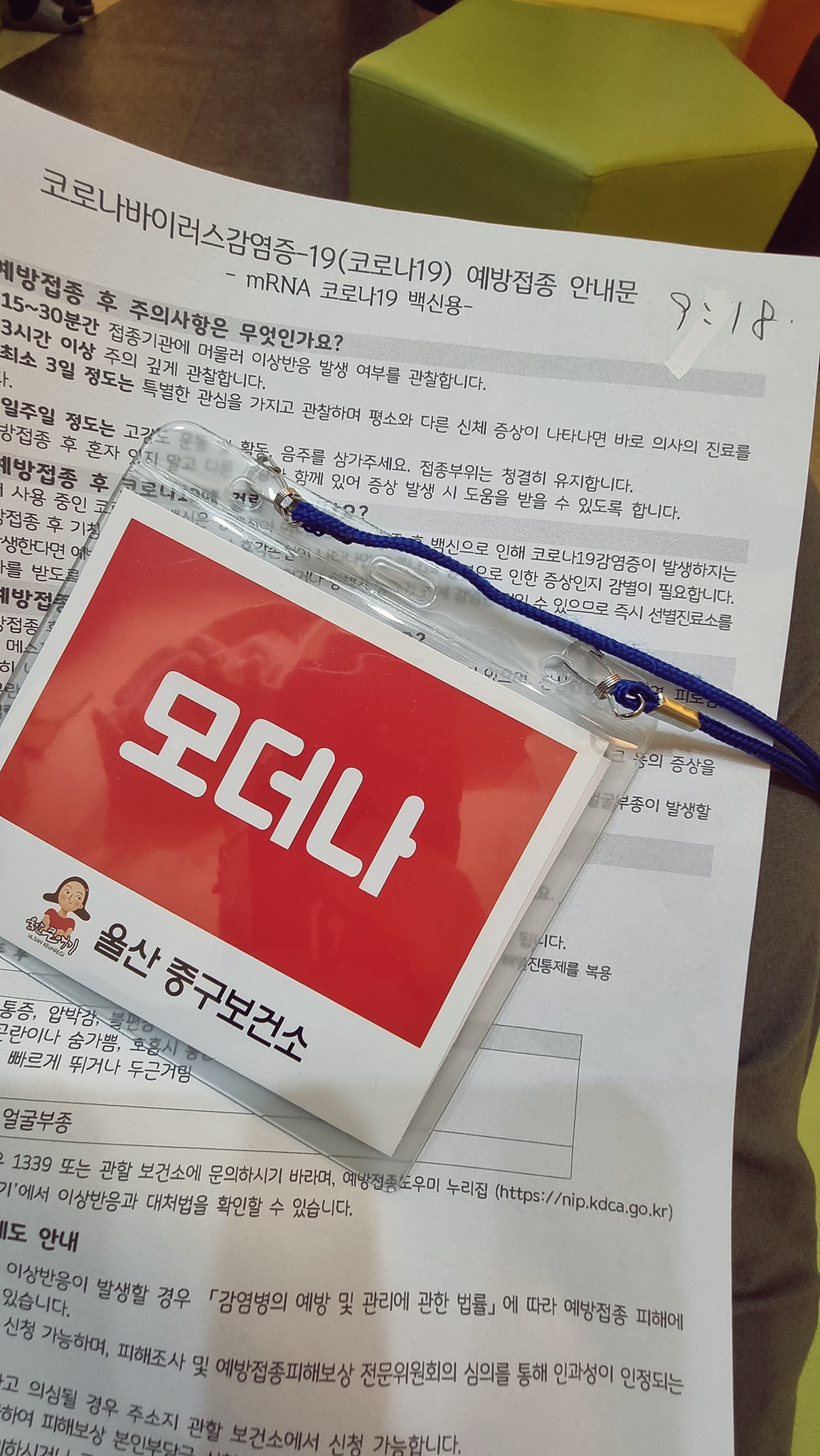 1차 접종을 하였네요.