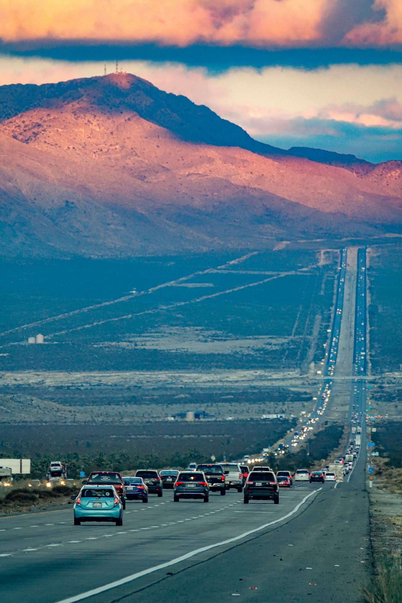 2019년 크리스마스 즈음 미국 여행을 했습니다. 얼바인에서 라스베이거스로 가던 길, 도로 풍경이 아름다워서 근처 주차공간에 차를 세우고 촬영했습니다.